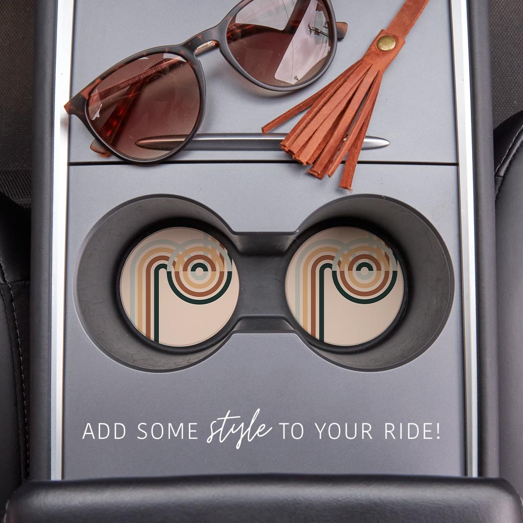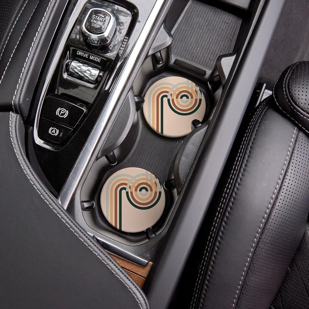 Modern Minimalist Retro Circular Lines| Absorbent Car Coasters | Set of 2 | Min 4