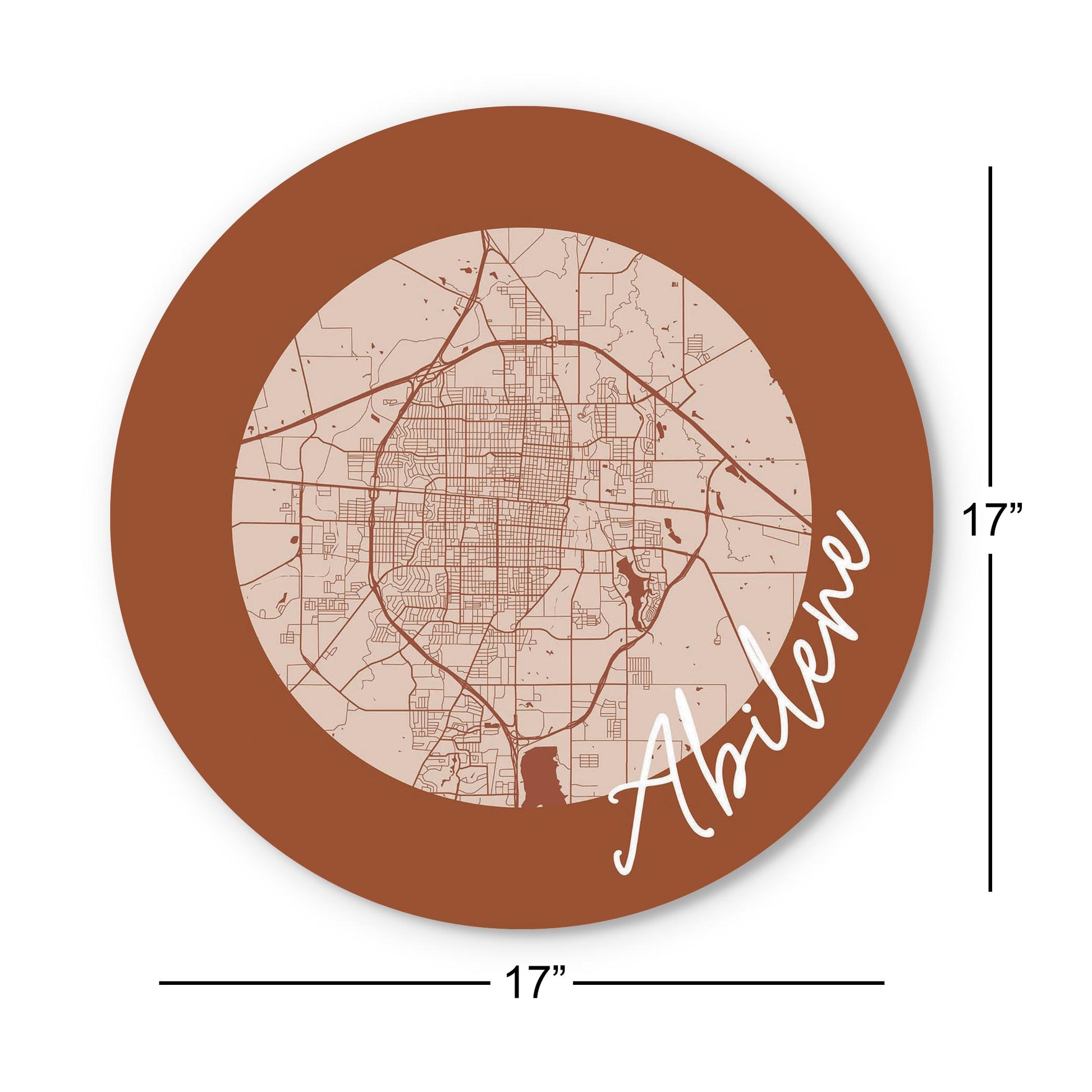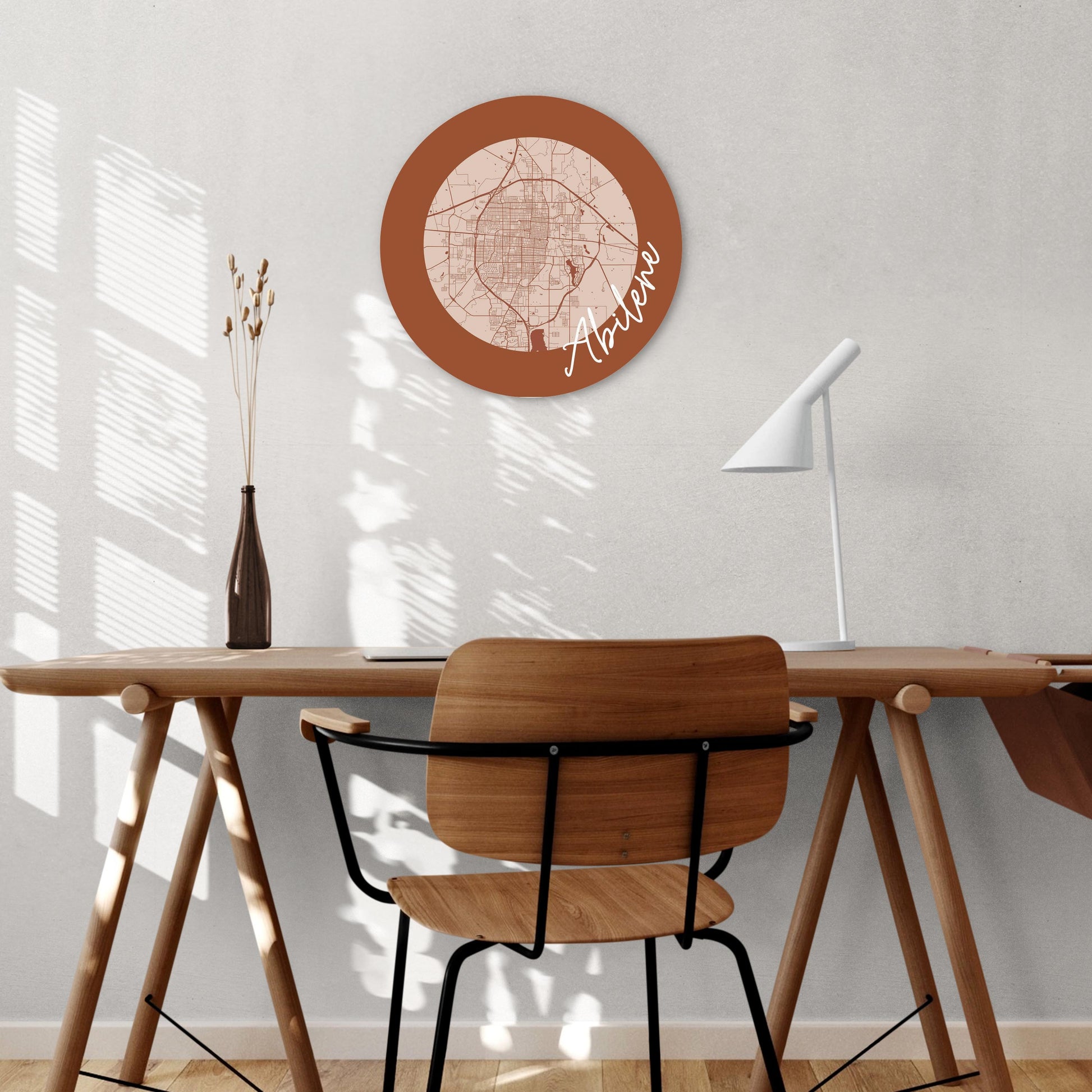 Modern Minimalist Texas Abilene Circle Map | Wood Sign | Eaches | Min 1