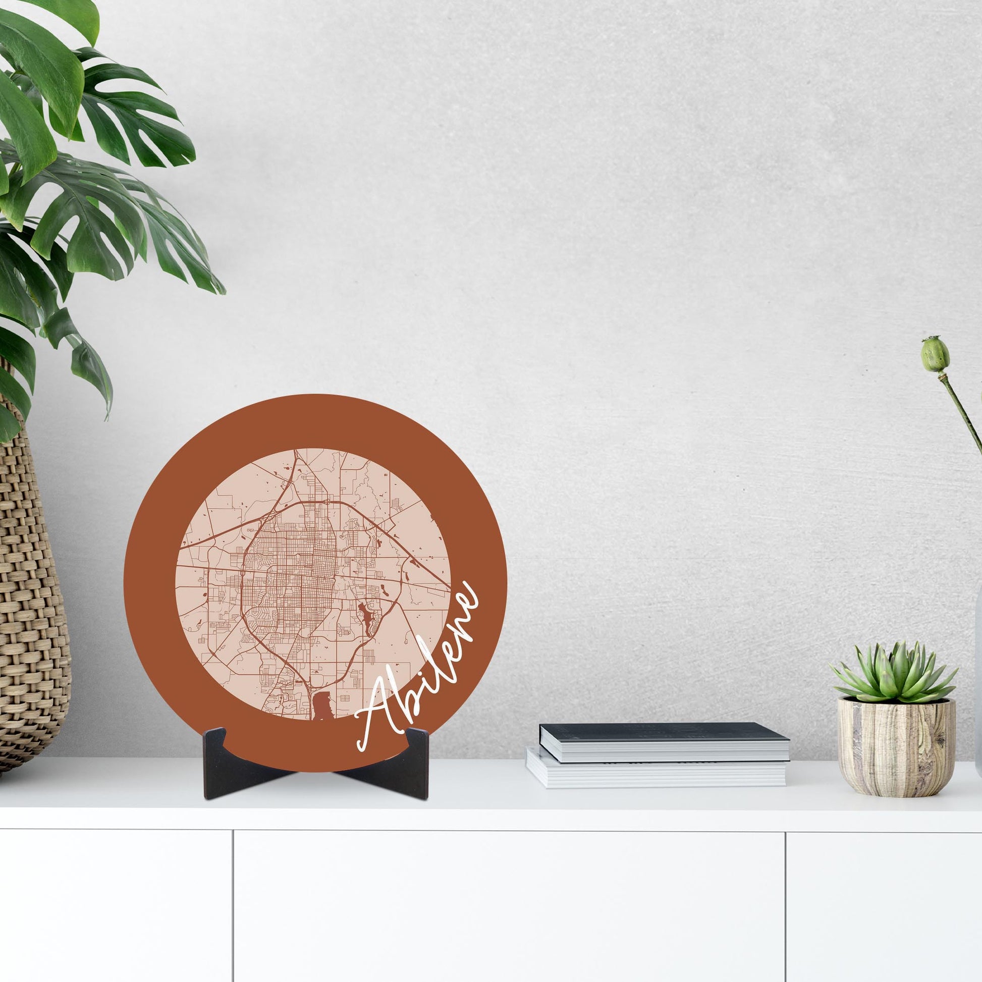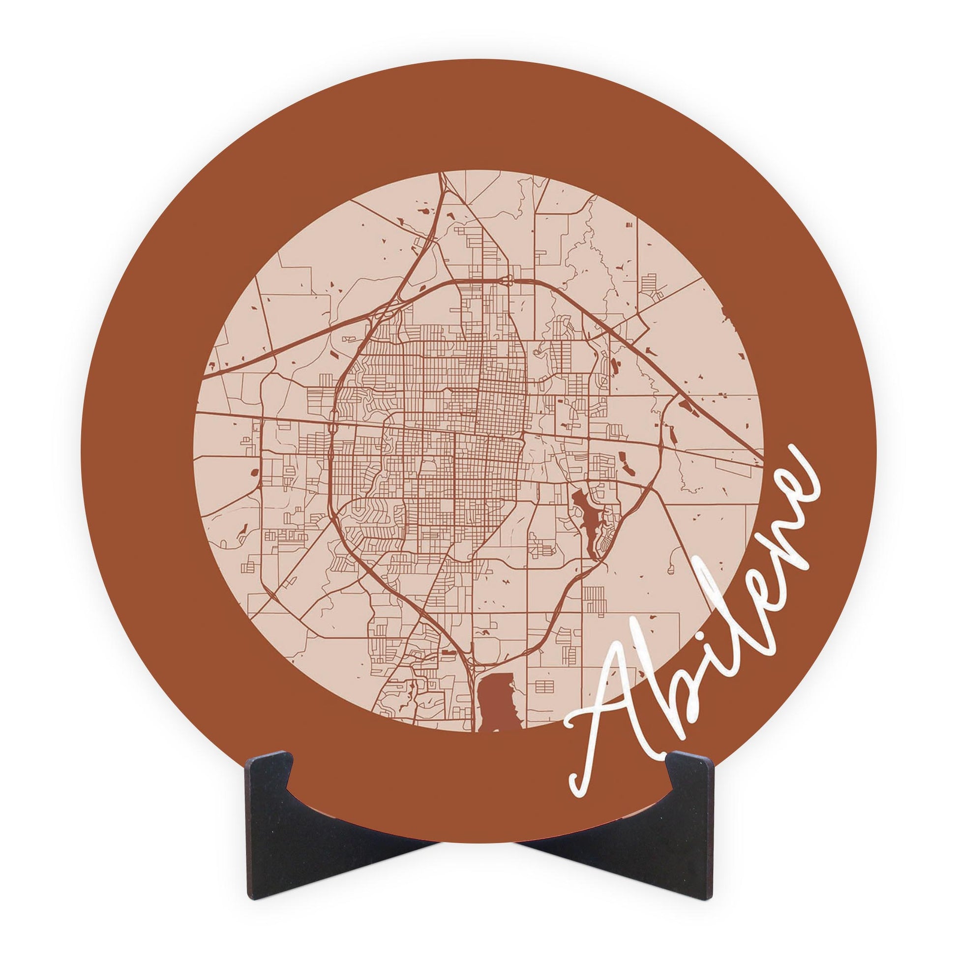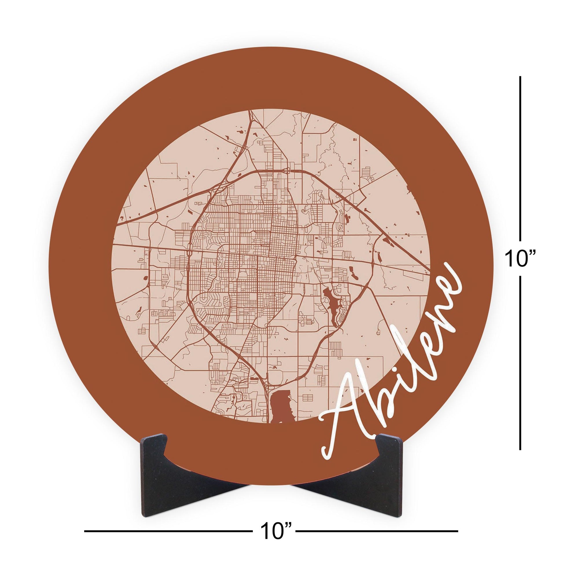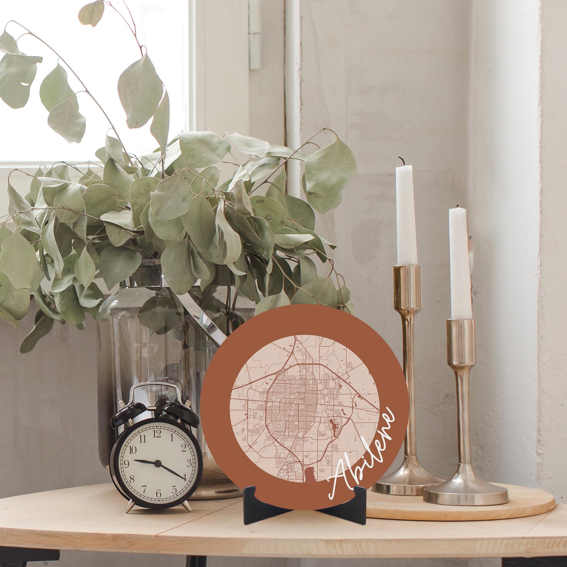 Modern Minimalist Texas Abilene Circle Map | Wood Sign | Eaches | Min 1