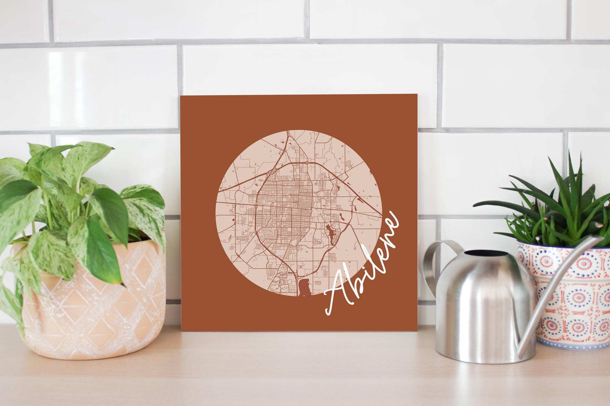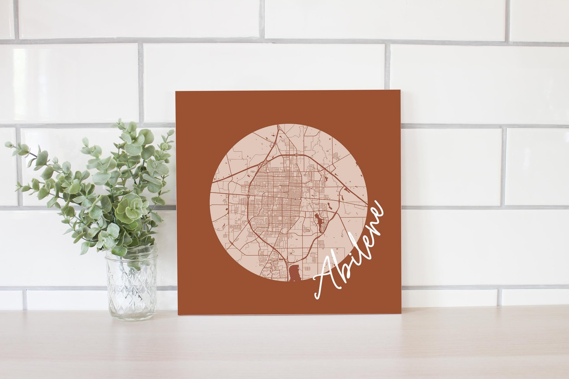 Modern Minimalist Texas Abilene Circle Map | Wood Sign | Eaches | Min 2