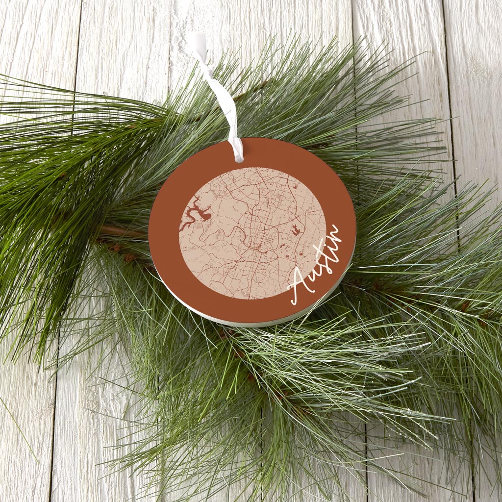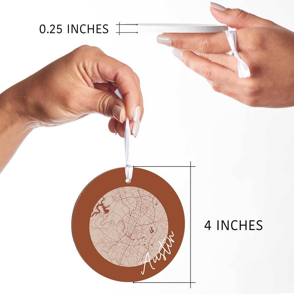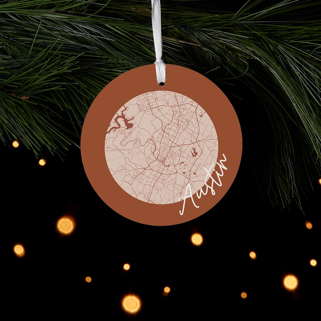 Modern Minimalist Texas Austin Circle Map | Wood Ornament | Eaches | Min 6