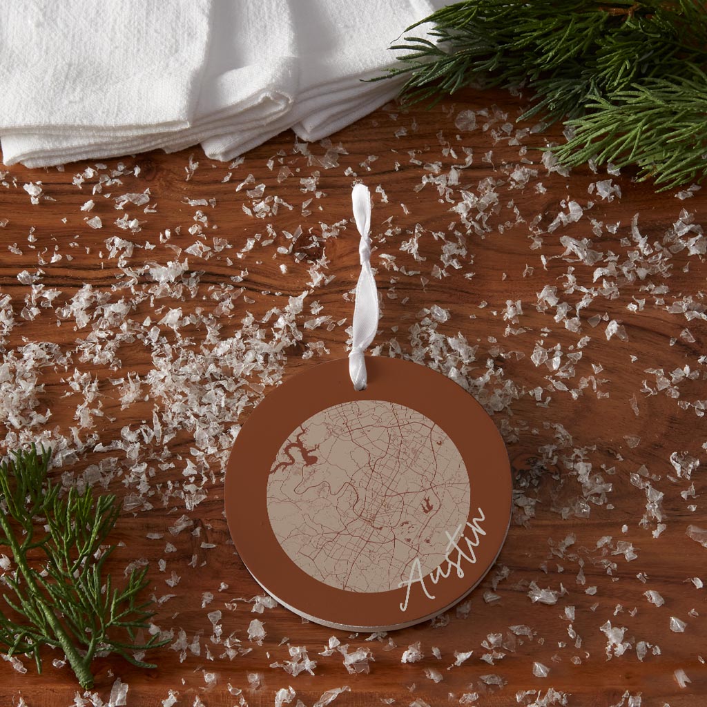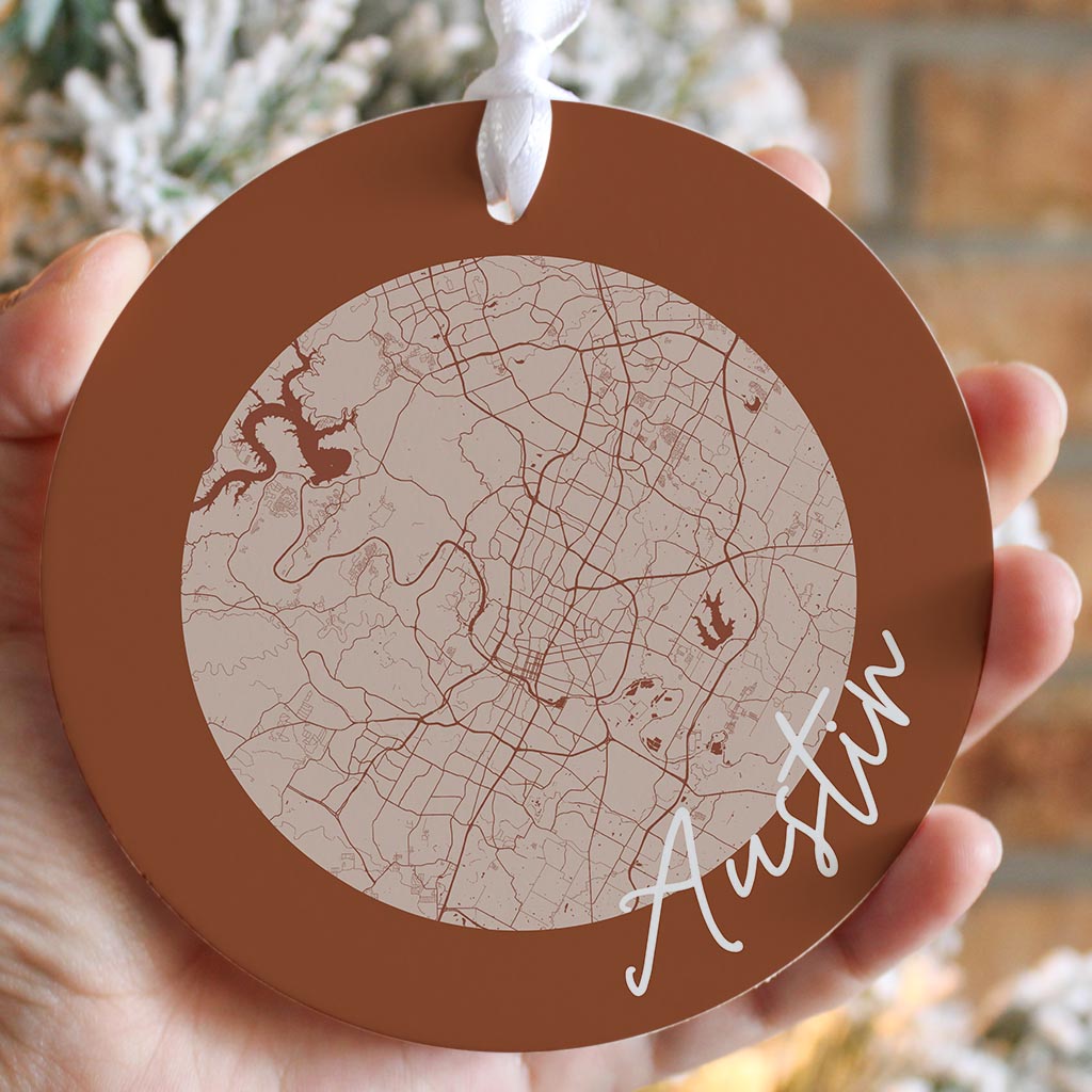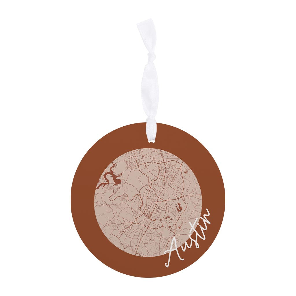 Modern Minimalist Texas Austin Circle Map | Wood Ornament | Eaches | Min 6