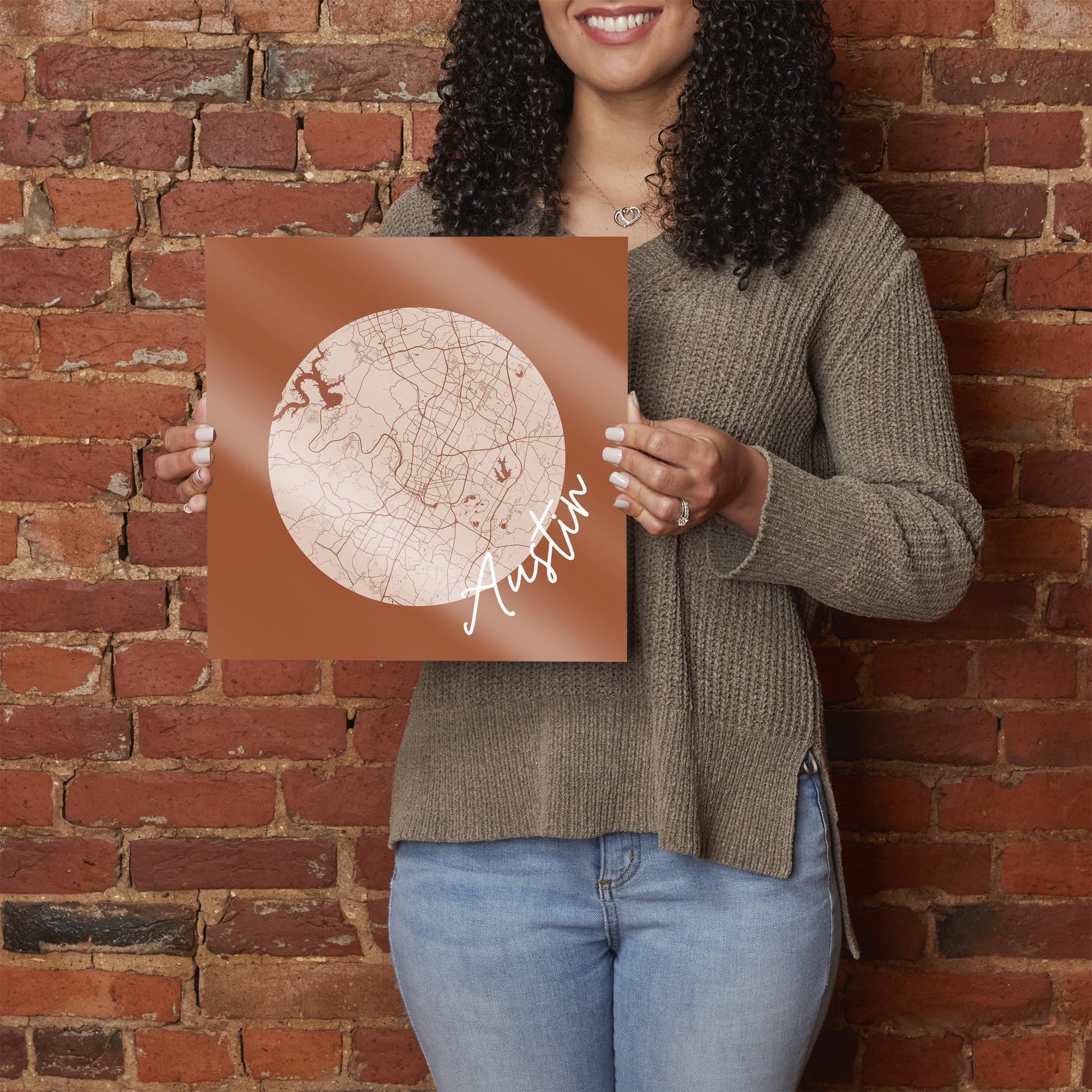 Modern Minimalist Texas Austin Circle Map | Hi-Def Glass Art | Eaches | Min 1