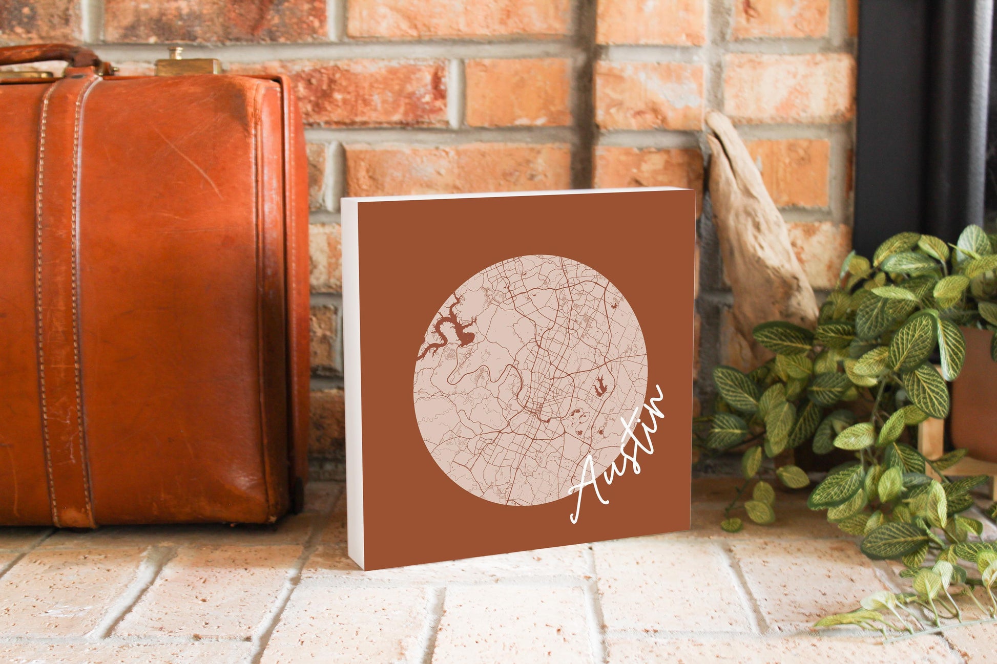 Modern Minimalist Texas Austin Circle Map | Wood Block | Eaches | Min 2