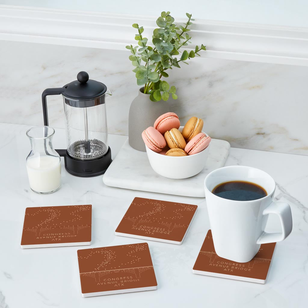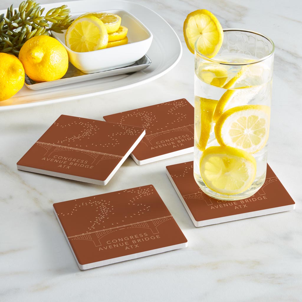 Modern Minimalist Texas Austin Congress Bridge | Absorbent Coasters | Set of 4 | Min 2