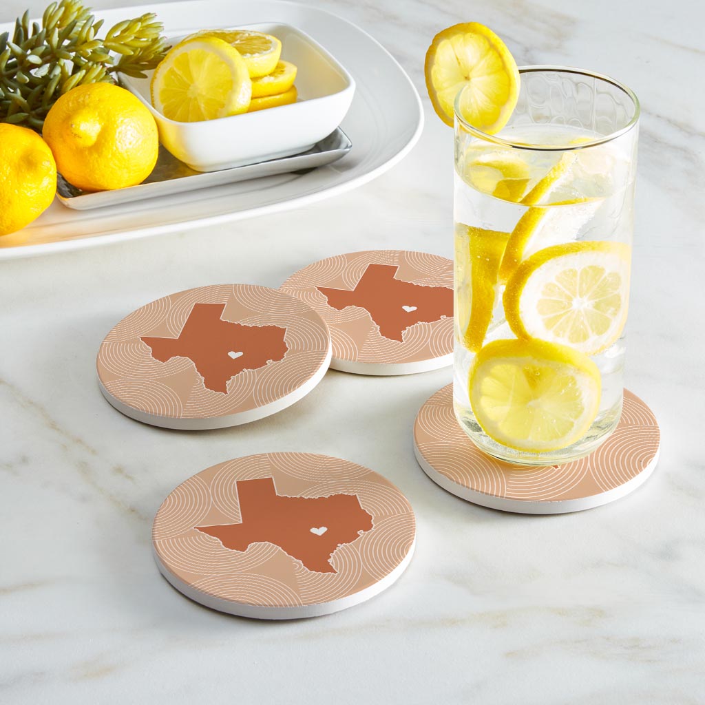 Modern Minimalist Texas Austin Heart | Absorbent Coasters | Set of 4 | Min 2