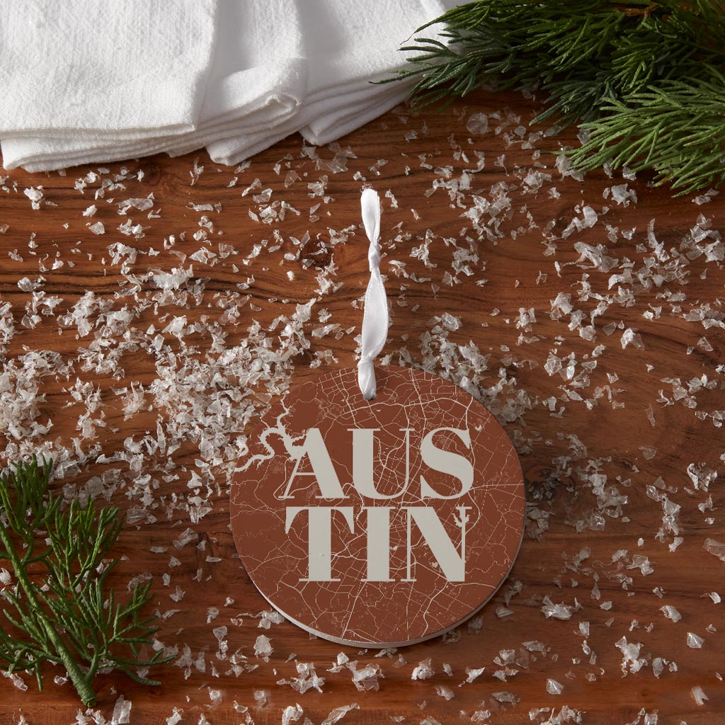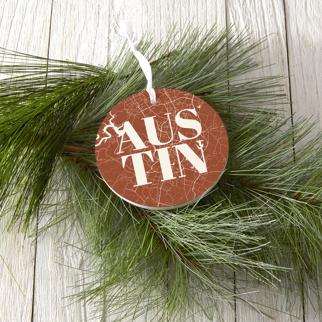 Modern Minimalist Texas Austin Map | Wood Ornament | Eaches | Min 6