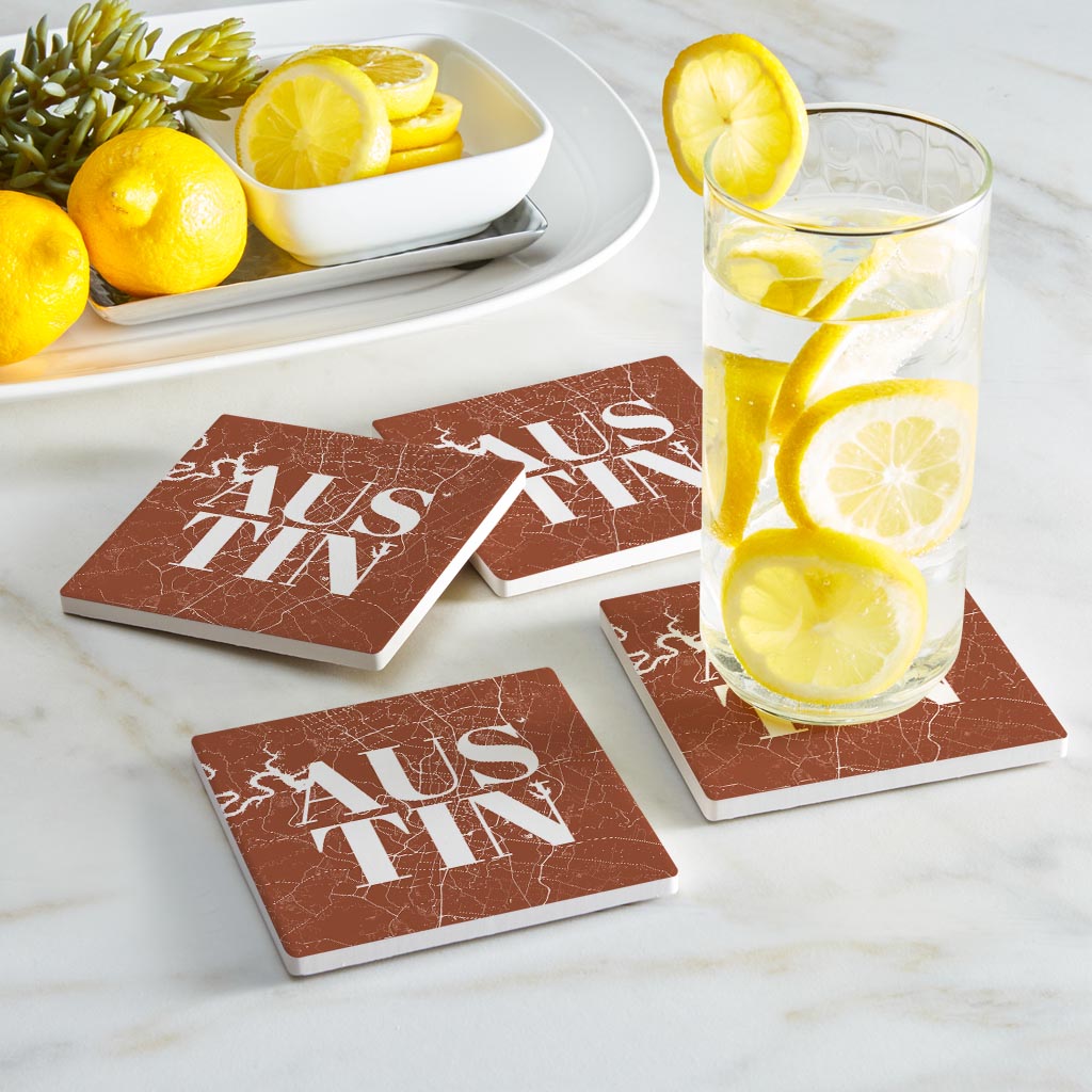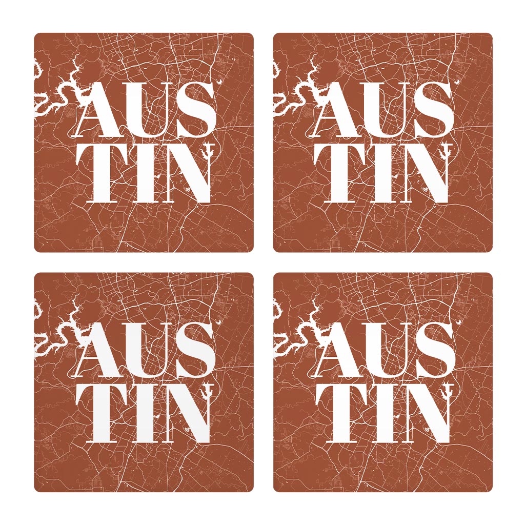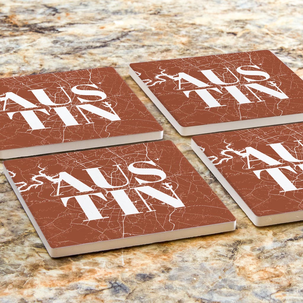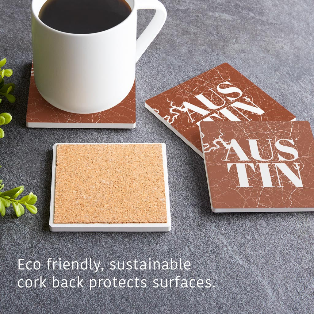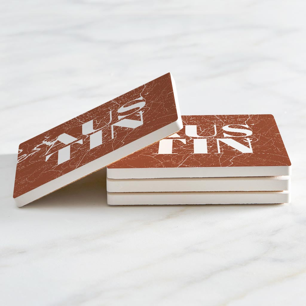 Modern Minimalist Texas Austin Map | Absorbent Coasters | Set of 4 | Min 2