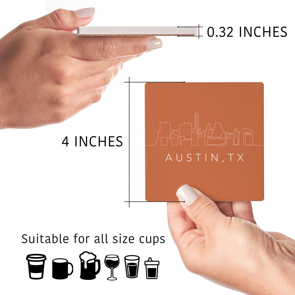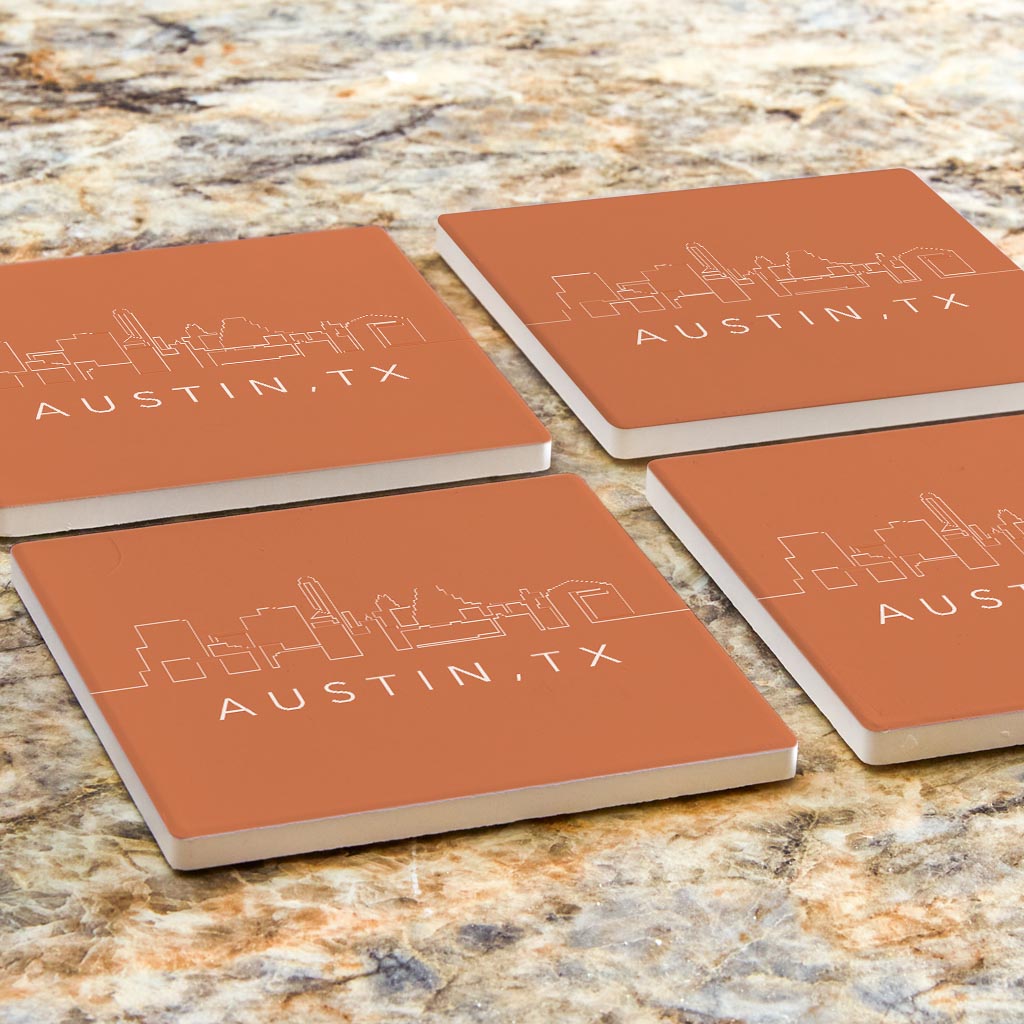 Modern Minimalist Texas Austin Skyline | Absorbent Coasters | Set of 4 | Min 2