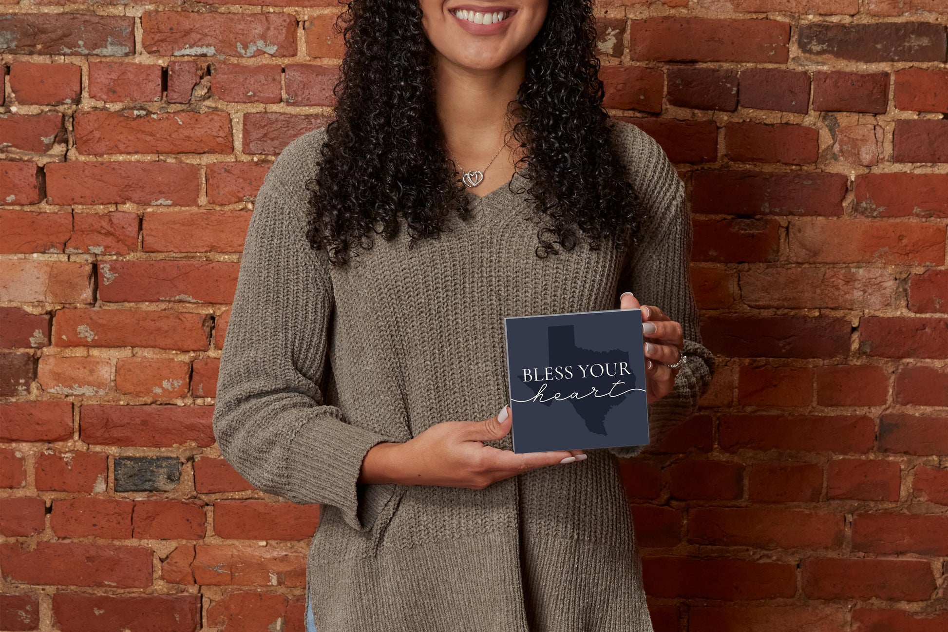 Modern Minimalist Texas Bless Your Heart | Wood Block | Eaches | Min 4