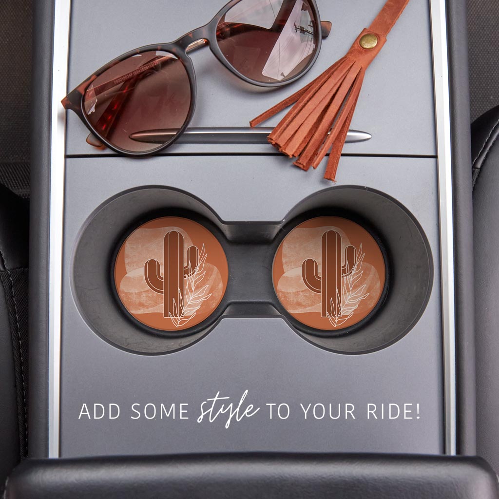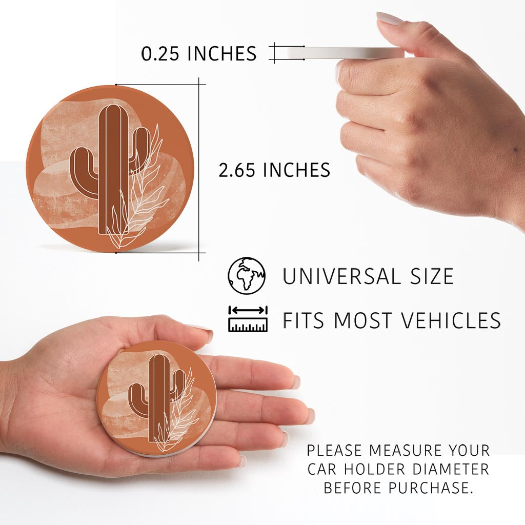 Modern Minimalist Texas Cactus | Absorbent Car Coasters | Set of 2 | Min 4