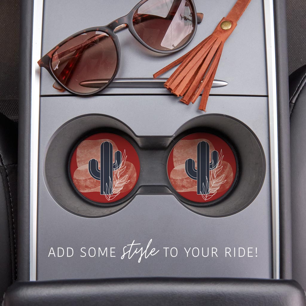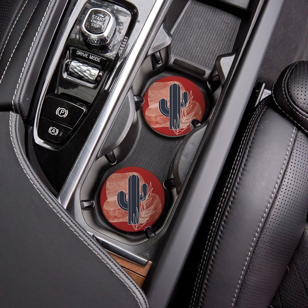 Modern Minimalist Texas Colors Cactus| Absorbent Car Coasters | Set of 2 | Min 4