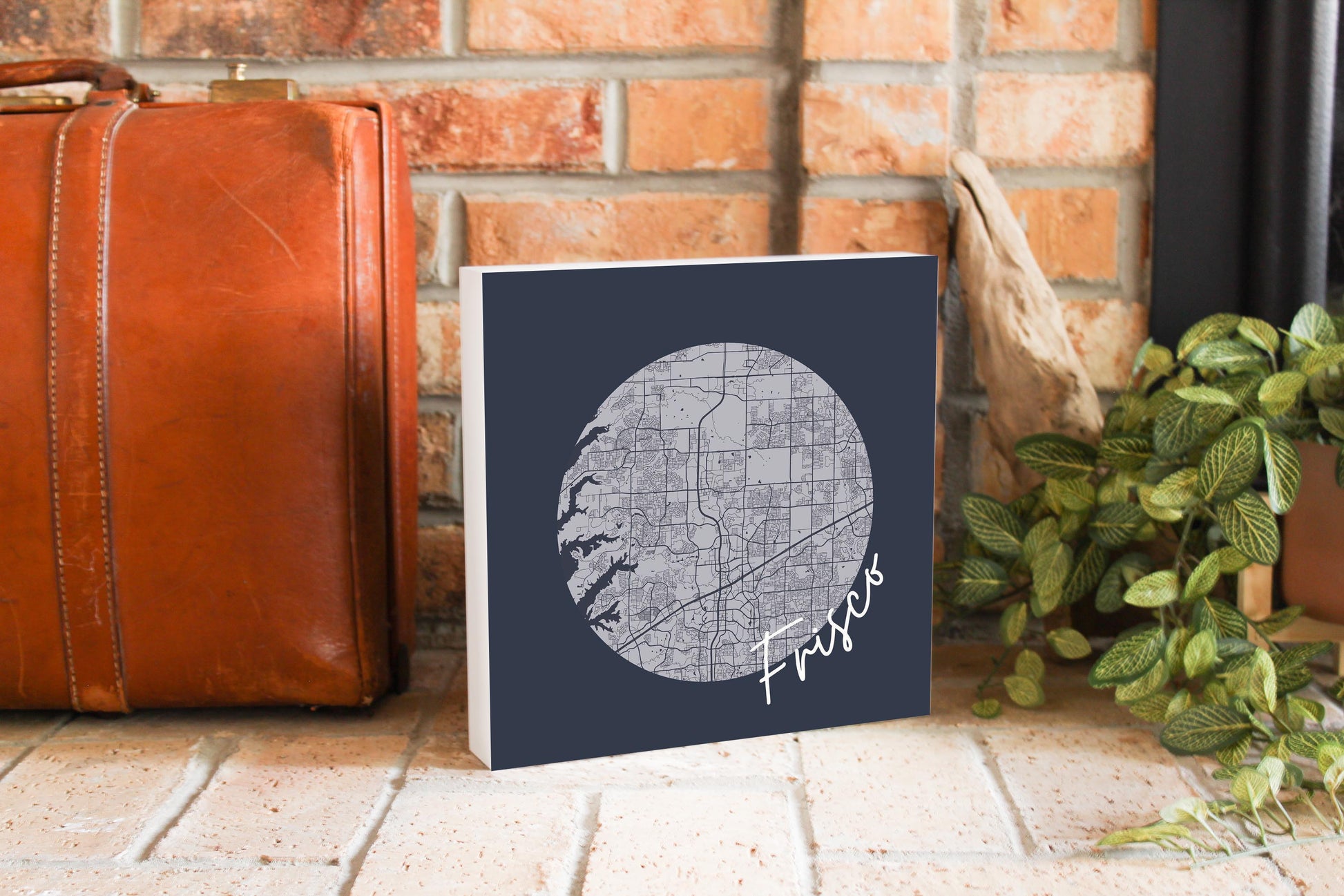 Modern Minimalist Texas Colors Frisco Circle Map | Wood Block | Eaches | Min 2