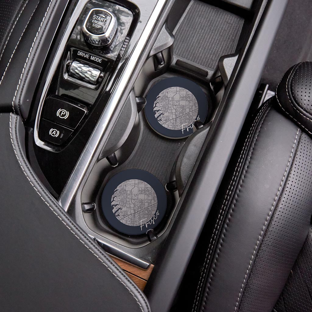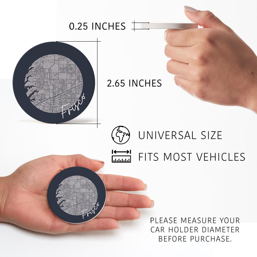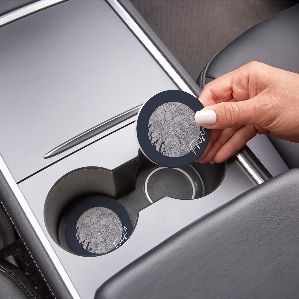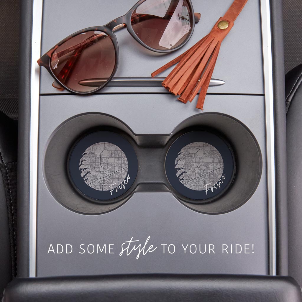 Modern Minimalist Texas Colors Frisco Circle Map | Absorbent Car Coasters | Set of 2 | Min 4