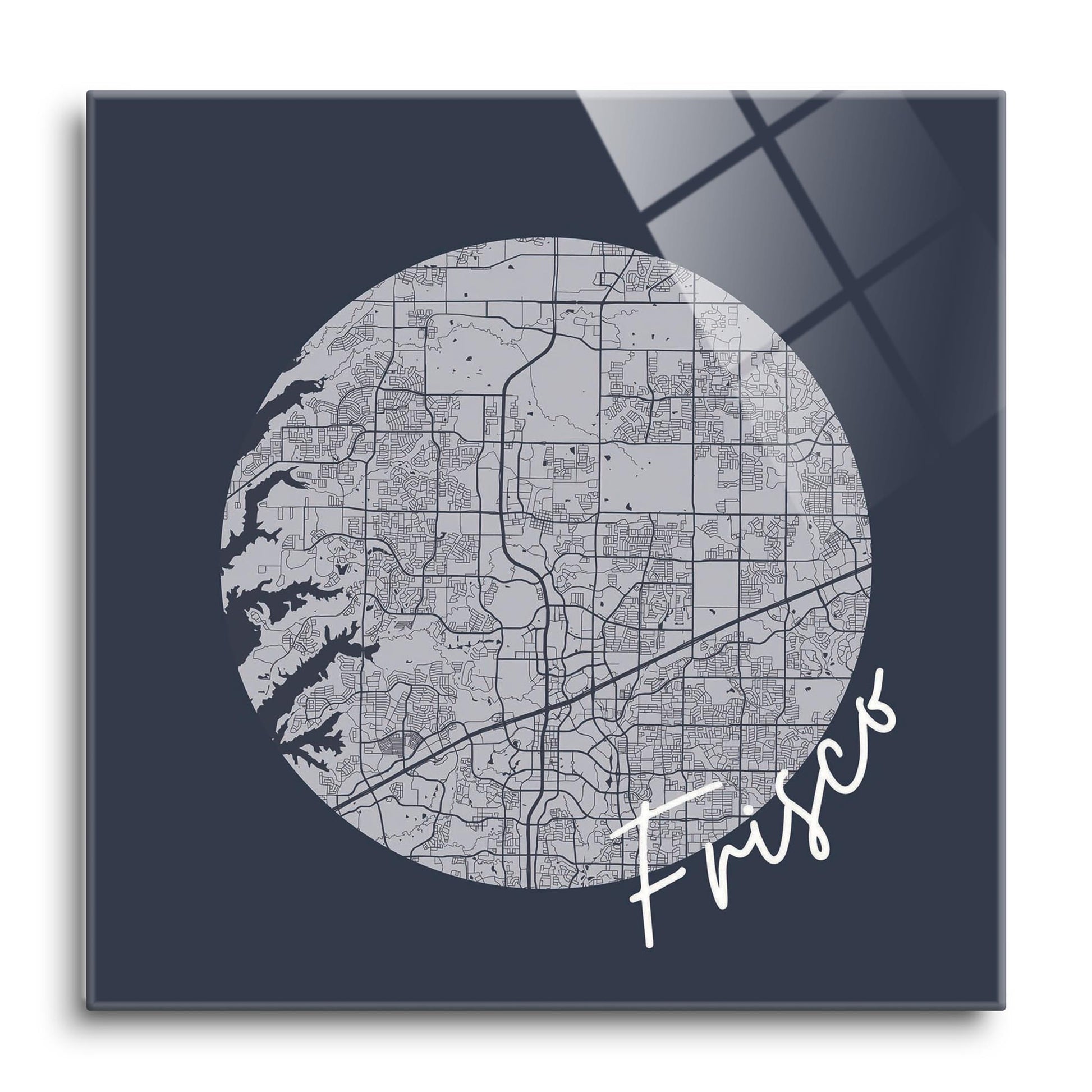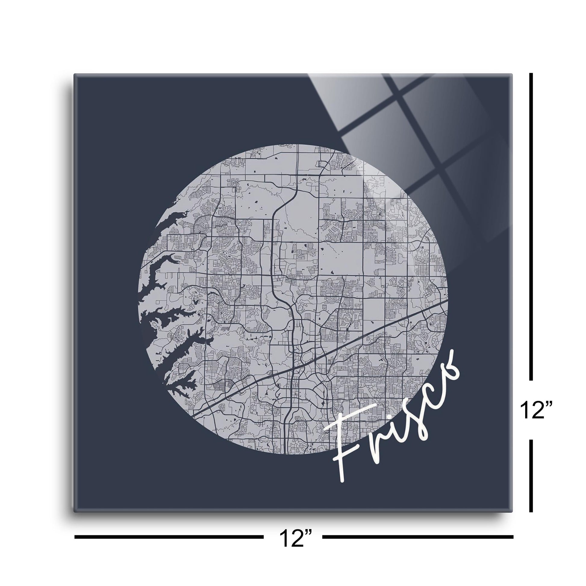 Modern Minimalist Texas Colors Frisco Circle Map | Hi-Def Glass Art | Eaches | Min 1