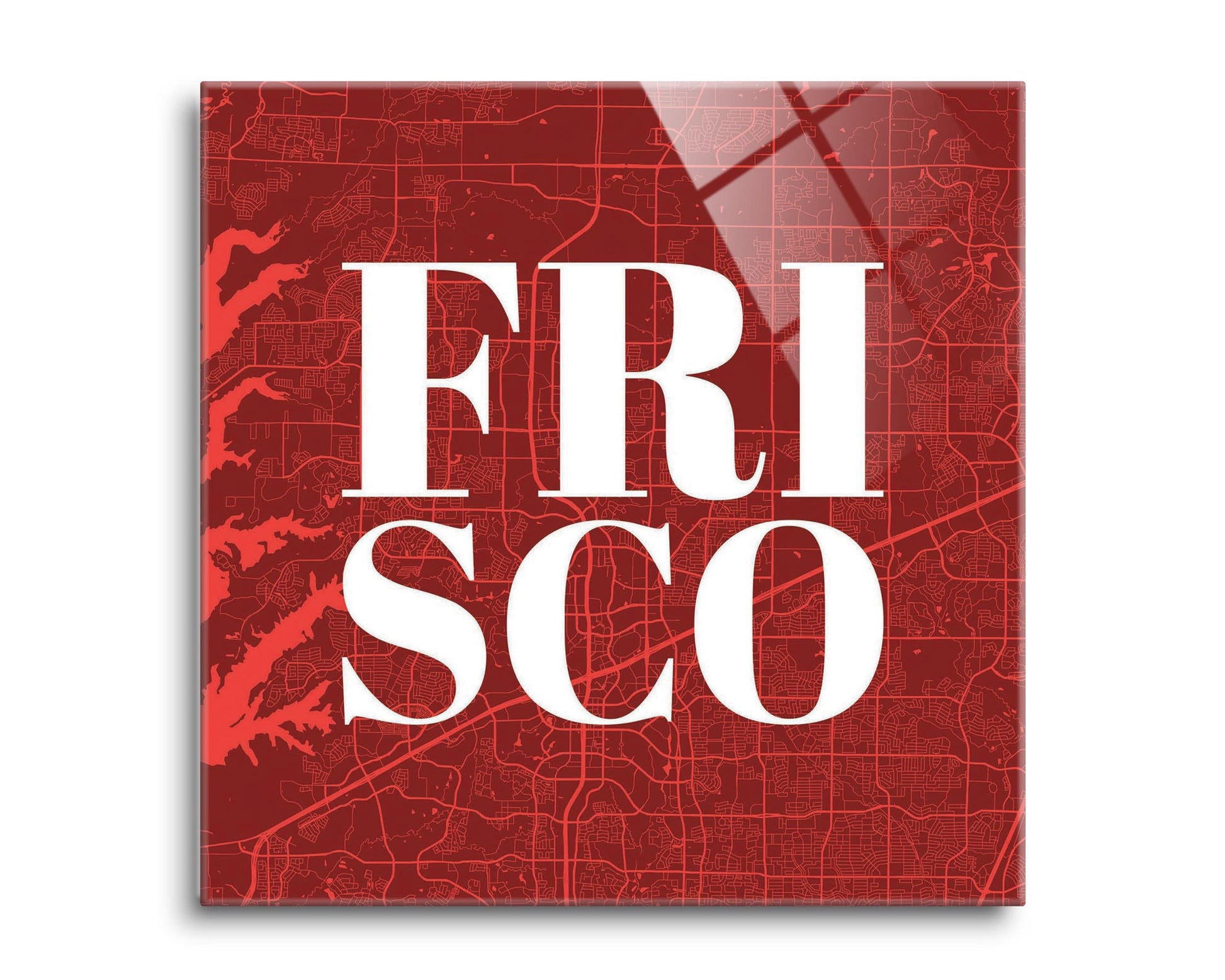 Modern Minimalist Texas Colors Frisco Map | Hi-Def Glass Art | Eaches | Min 2