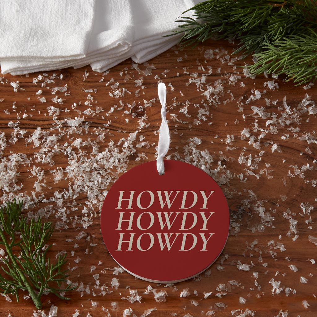 Modern Minimalist Texas Colors Howdy | Wood Ornament | Eaches | Min 6