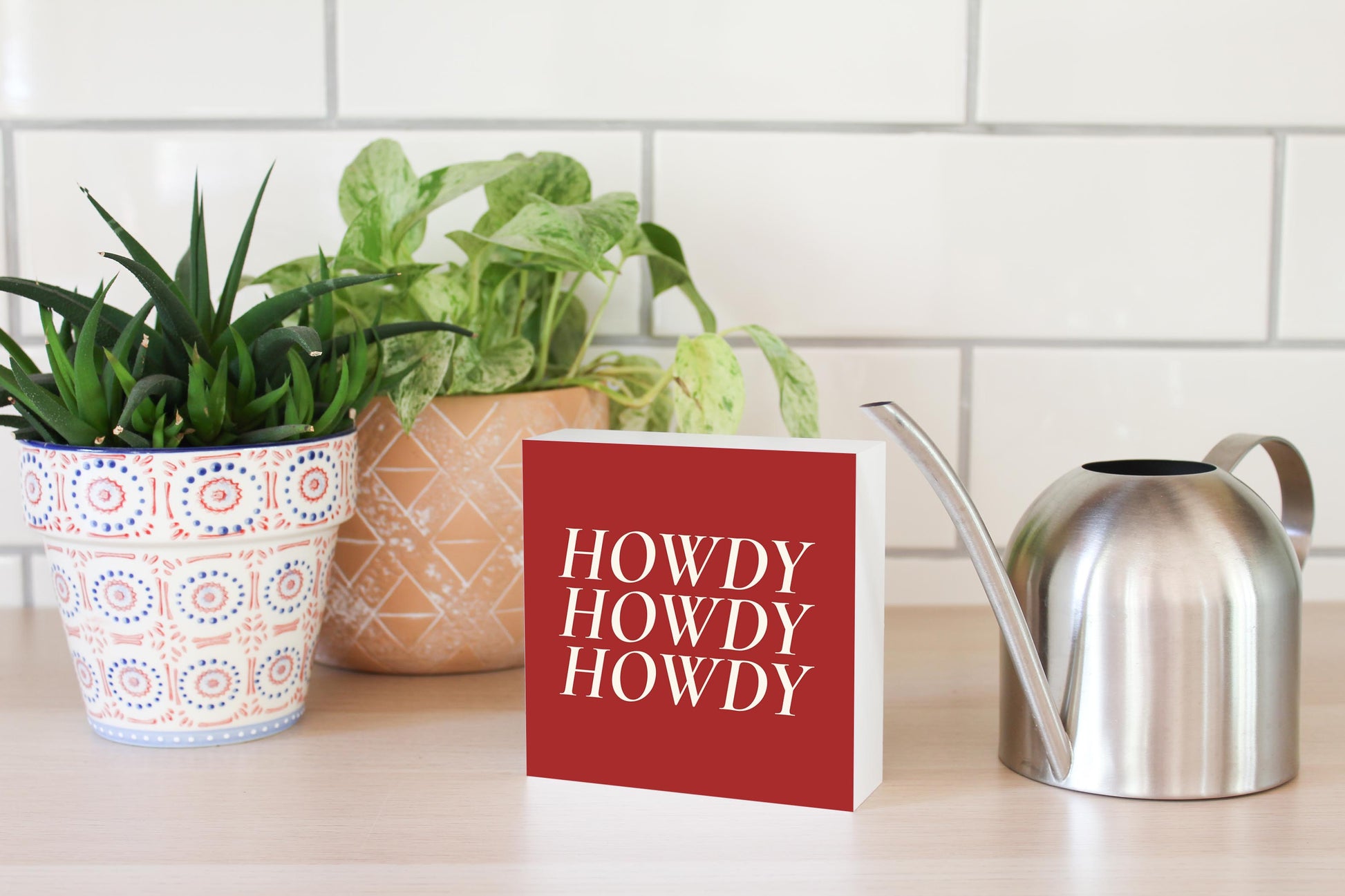 Modern Minimalist Texas Colors Howdy | Wood Block | Eaches | Min 4