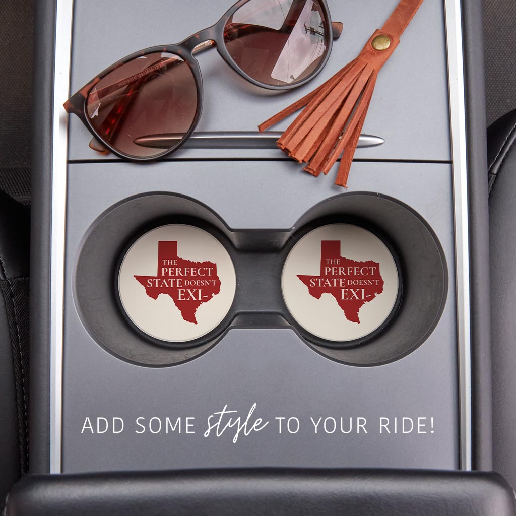 Modern Minimalist Texas Colors Perfect State | Absorbent Car Coasters | Set of 2 | Min 4