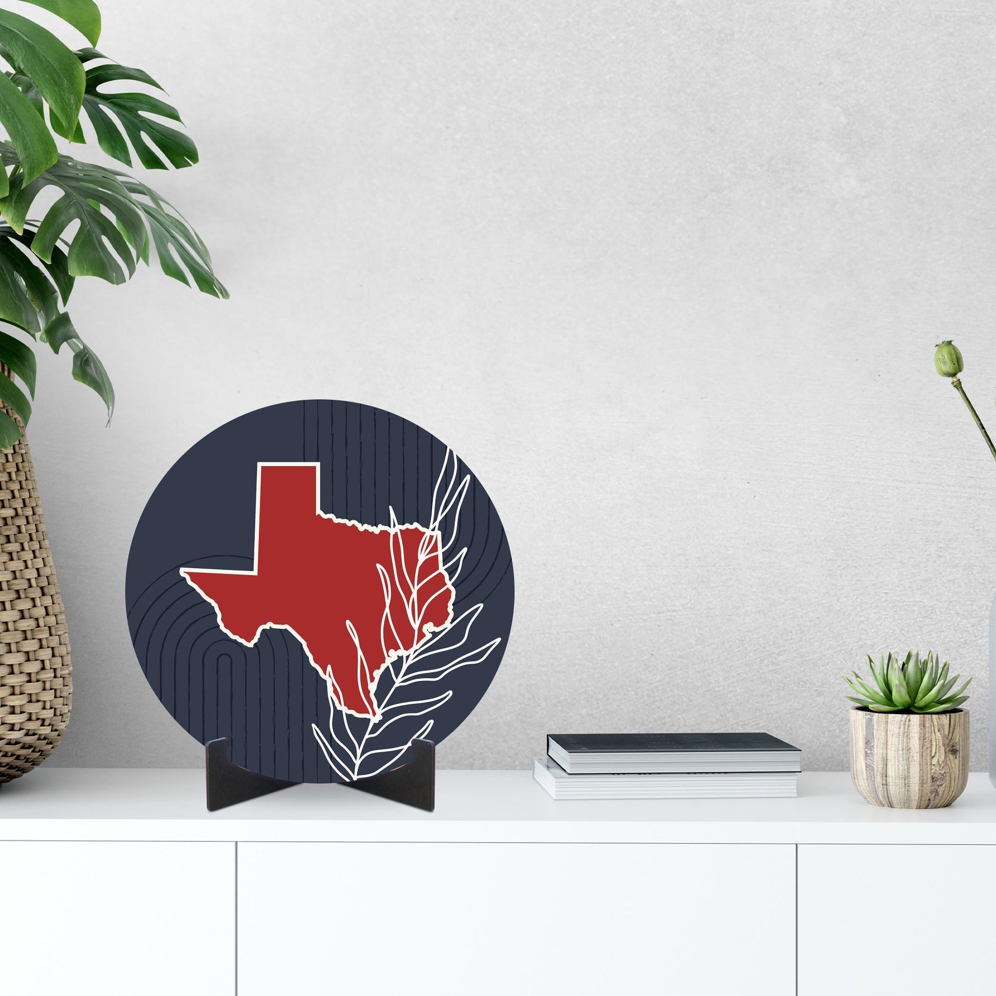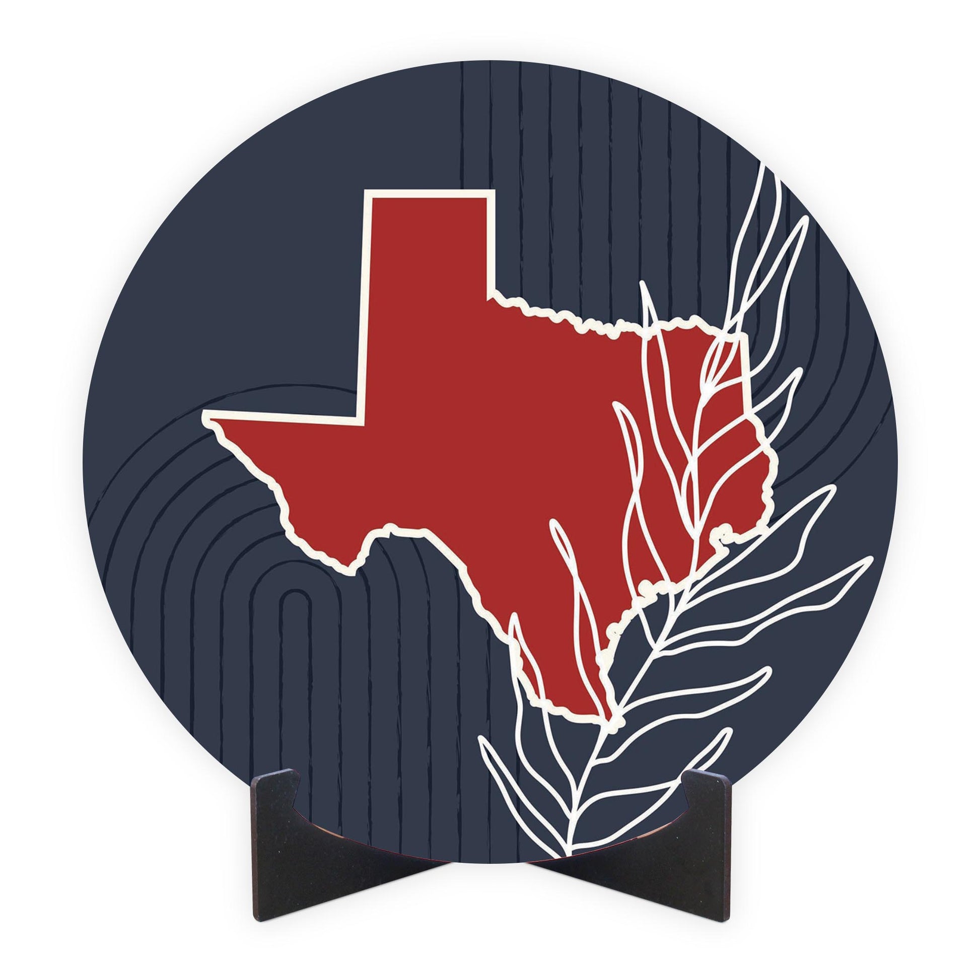 Modern Minimalist Texas Colors Shape Leaf | Wood Sign | Eaches | Min 1