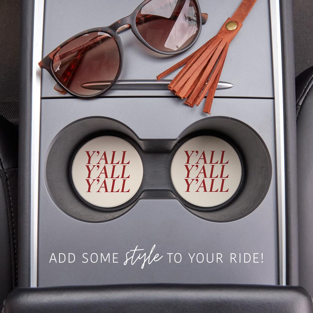 Modern Minimalist Texas Colors Yall| Absorbent Car Coasters | Set of 2 | Min 4