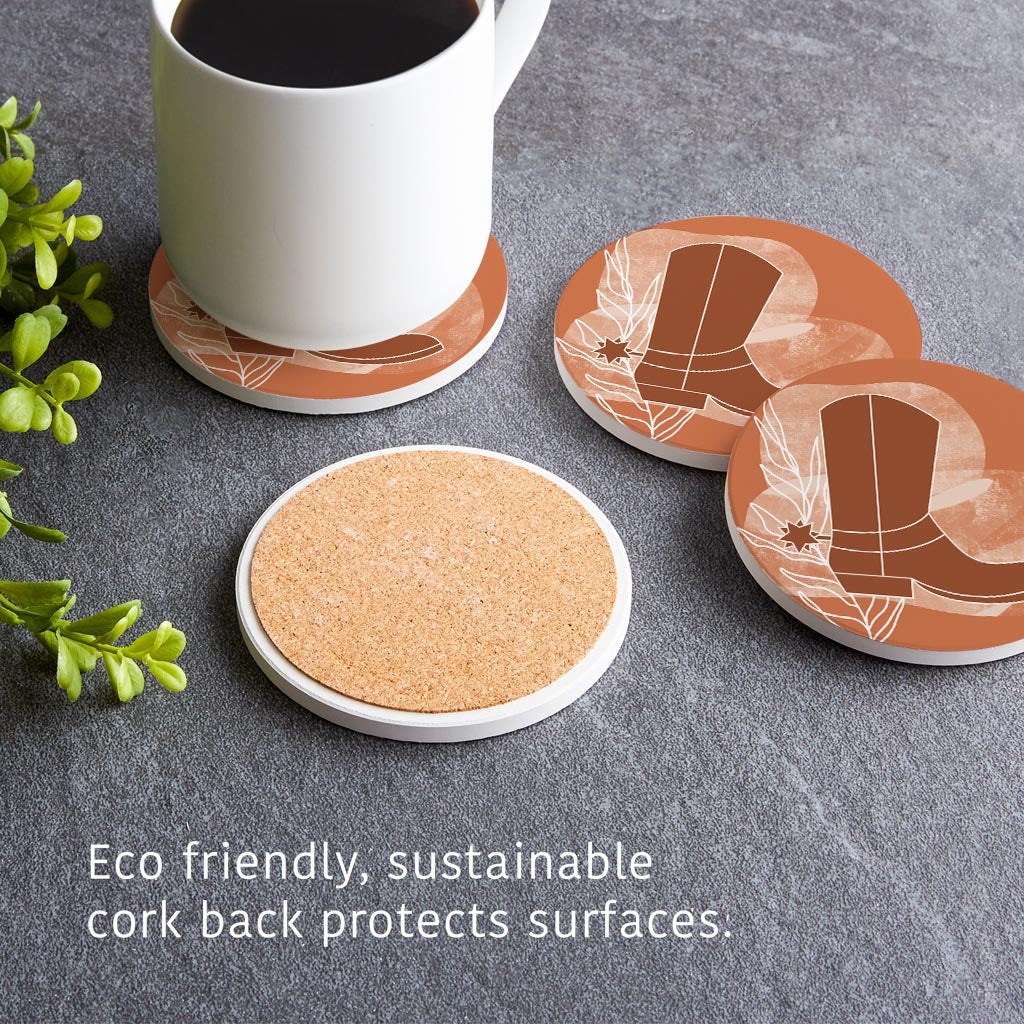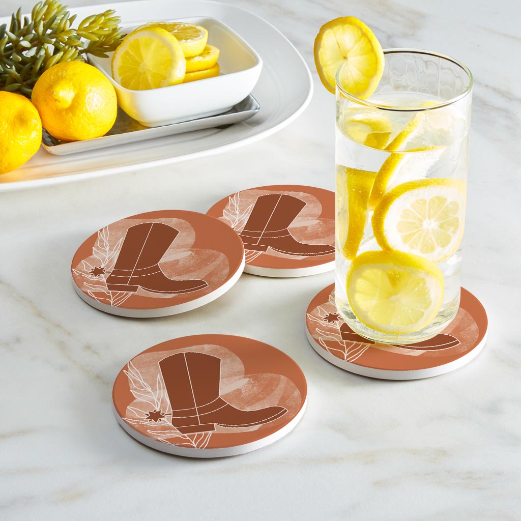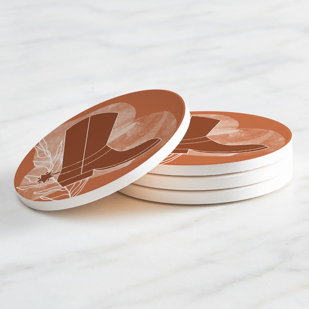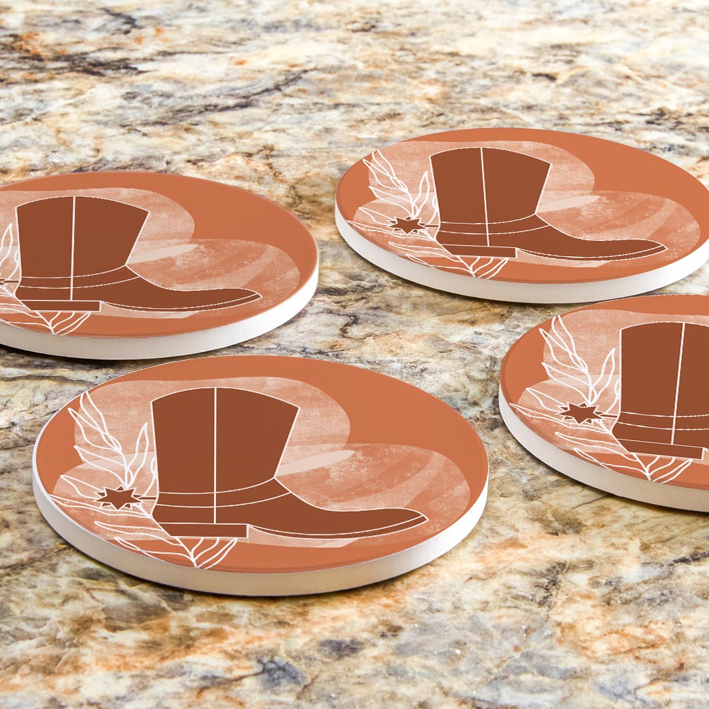 Modern Minimalist Texas Cowboy Boot | Absorbent Coasters | Set of 4 | Min 2