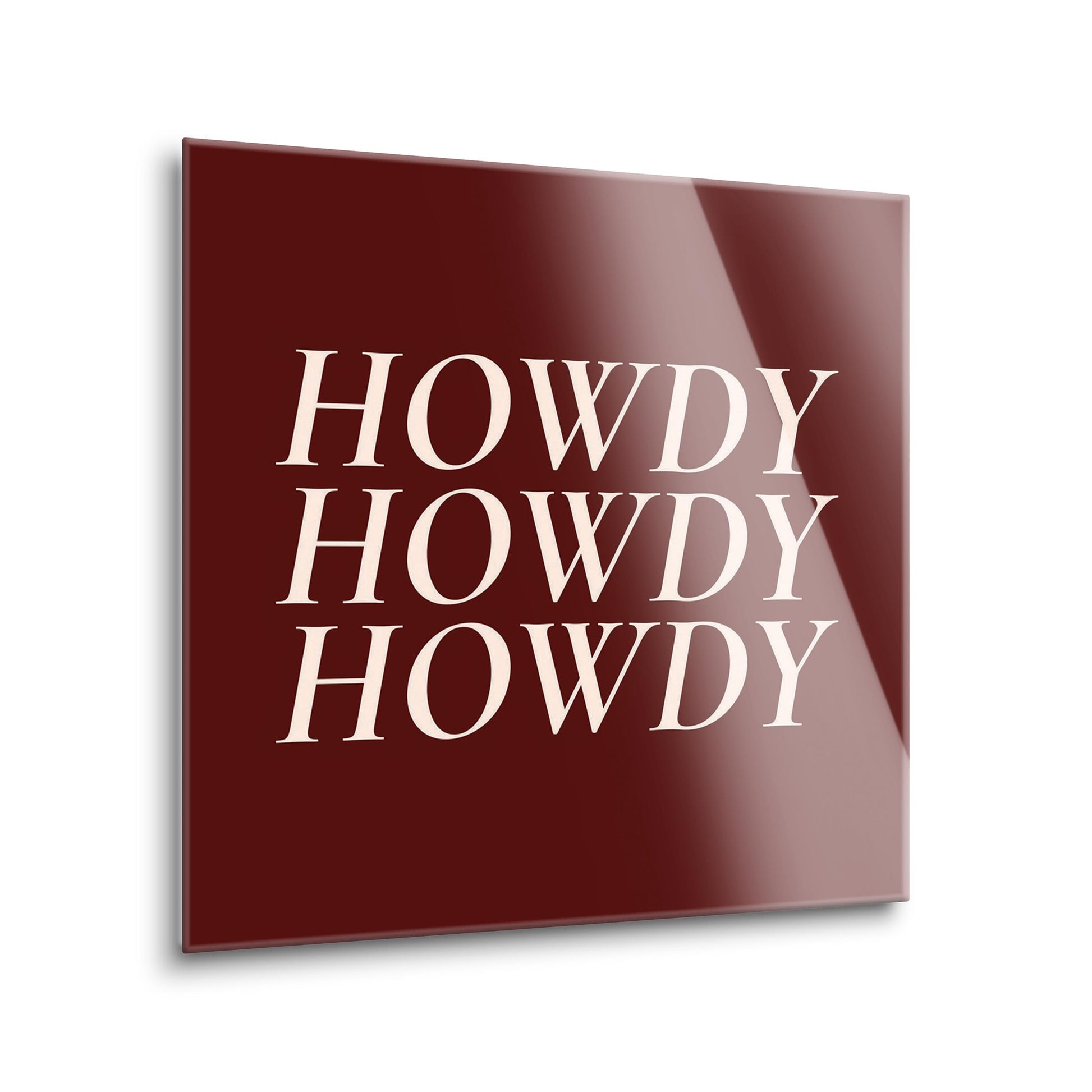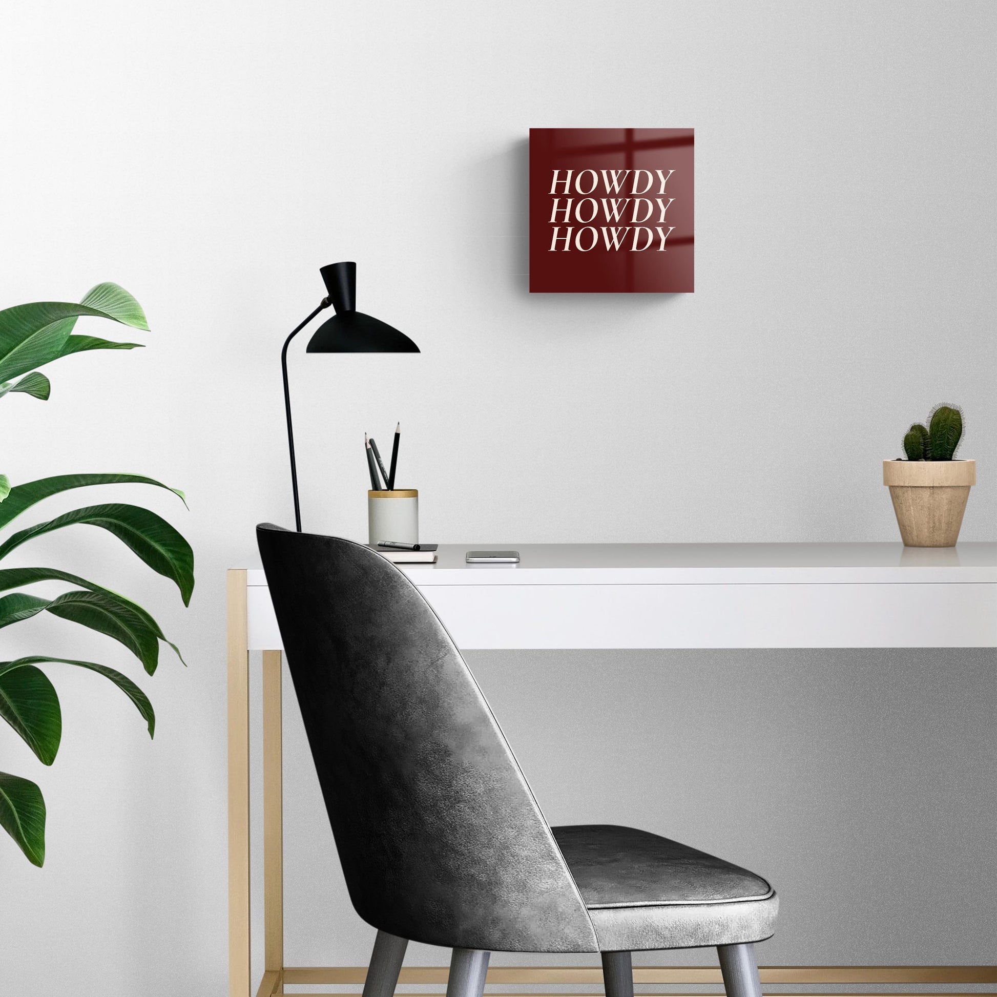 Modern Minimalist Texas Maroon Howdy| Hi-Def Glass Art | Eaches | Min 2