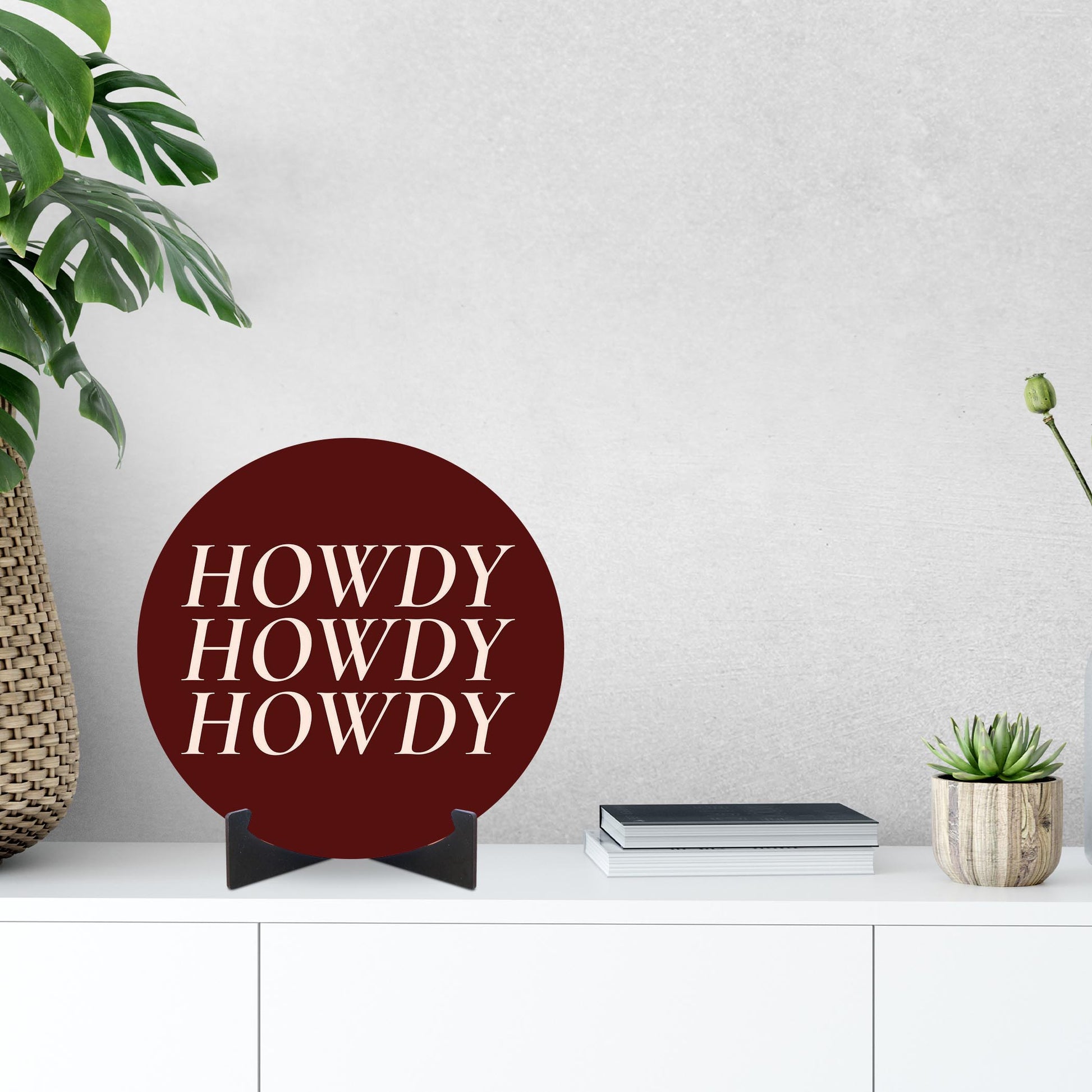 Modern Minimalist Texas Maroon Howdy | Wood Sign | Eaches | Min 1