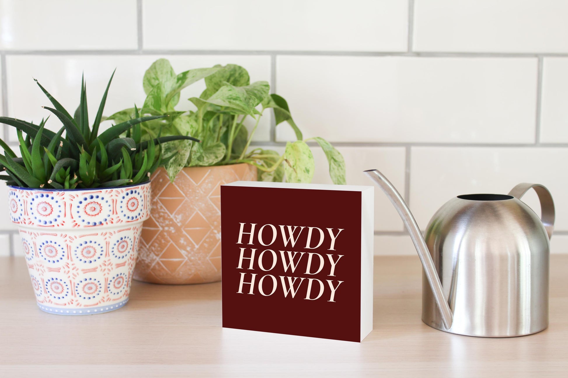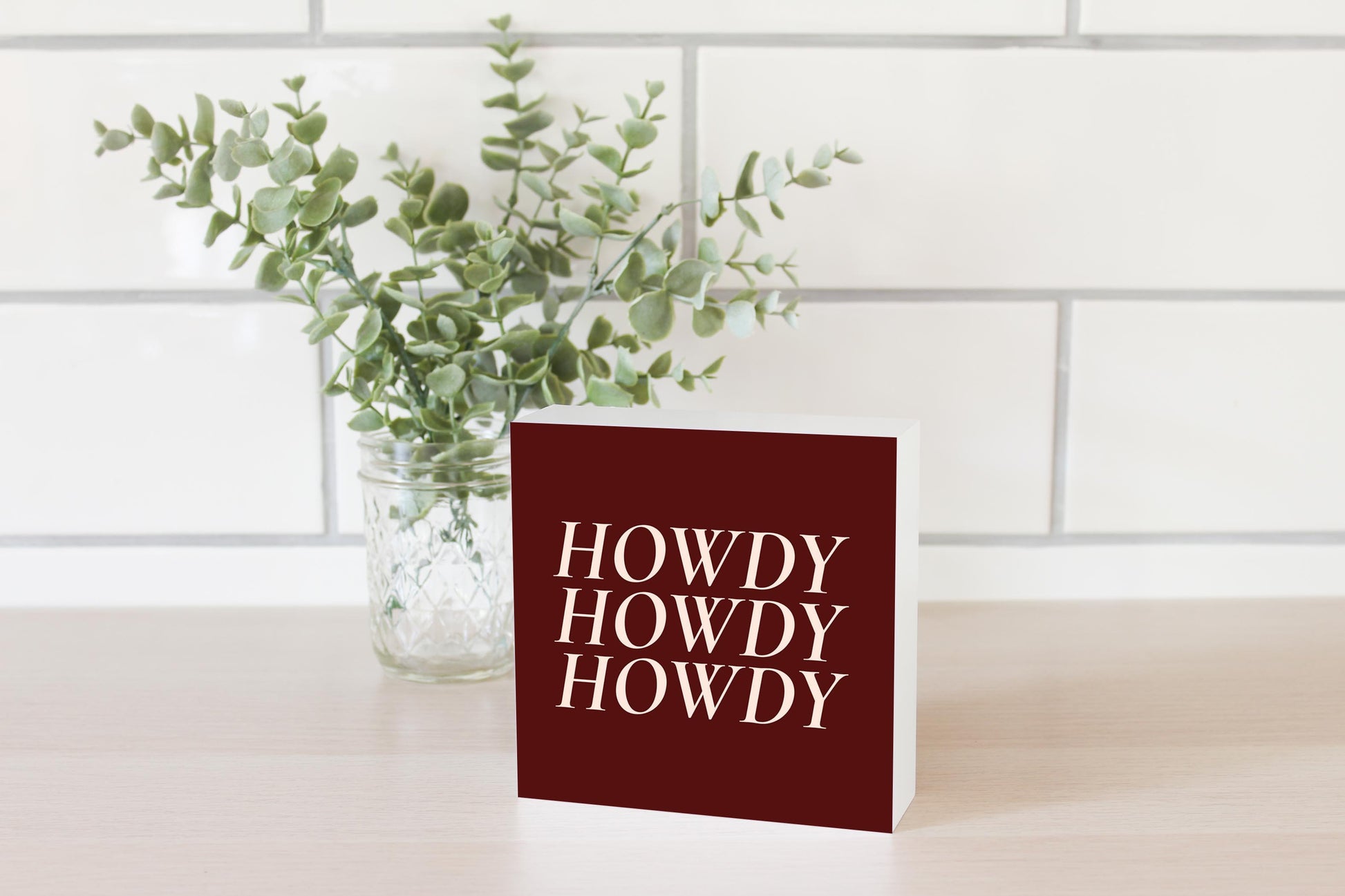 Modern Minimalist Texas Maroon Howdy | Wood Block | Eaches | Min 4