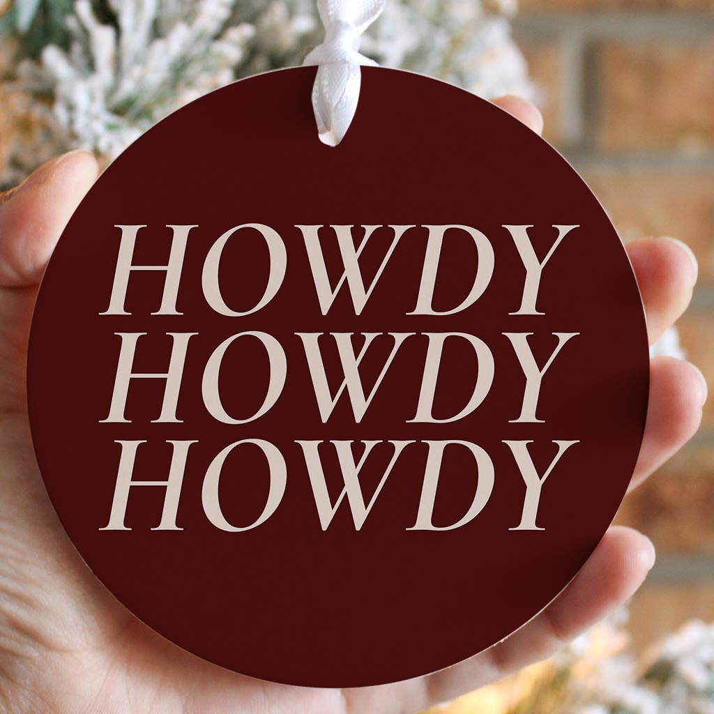 Modern Minimalist Texas Maroon Howdy | Wood Ornament | Eaches | Min 6