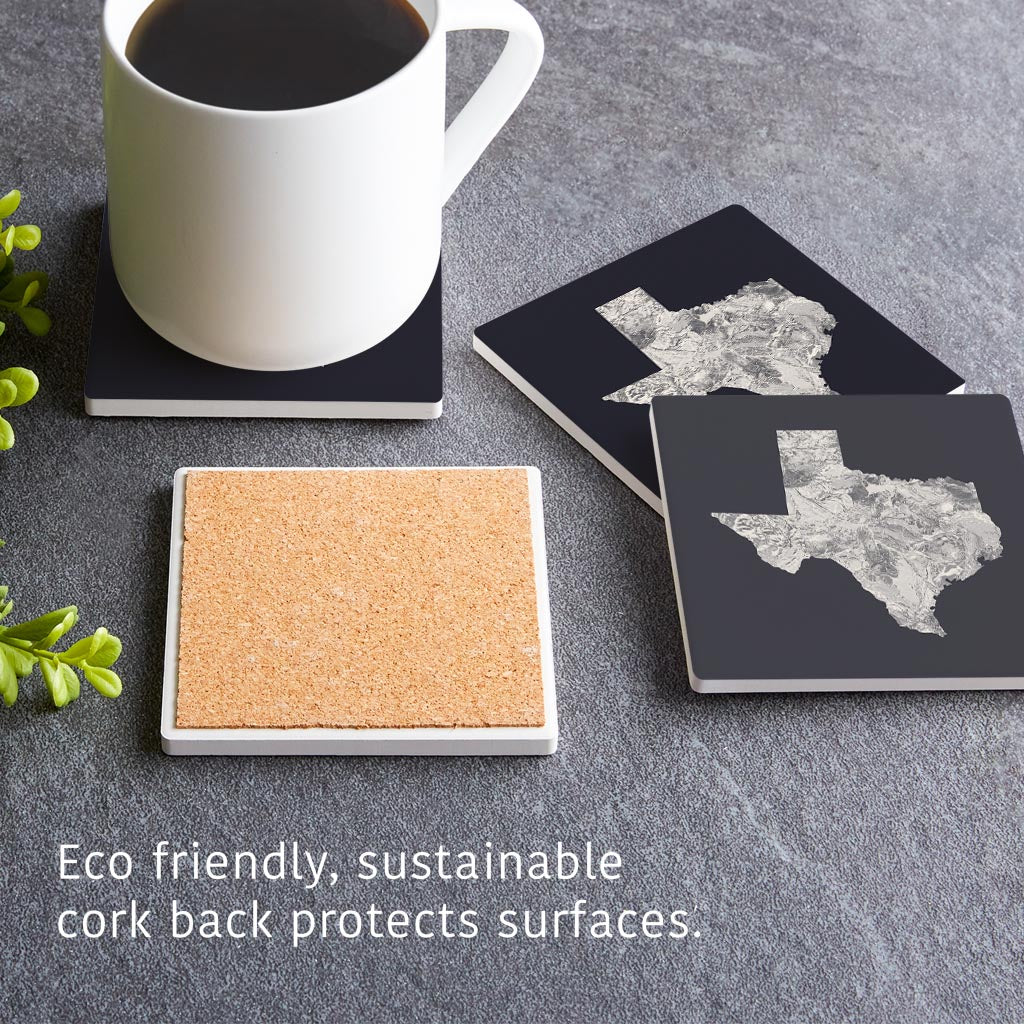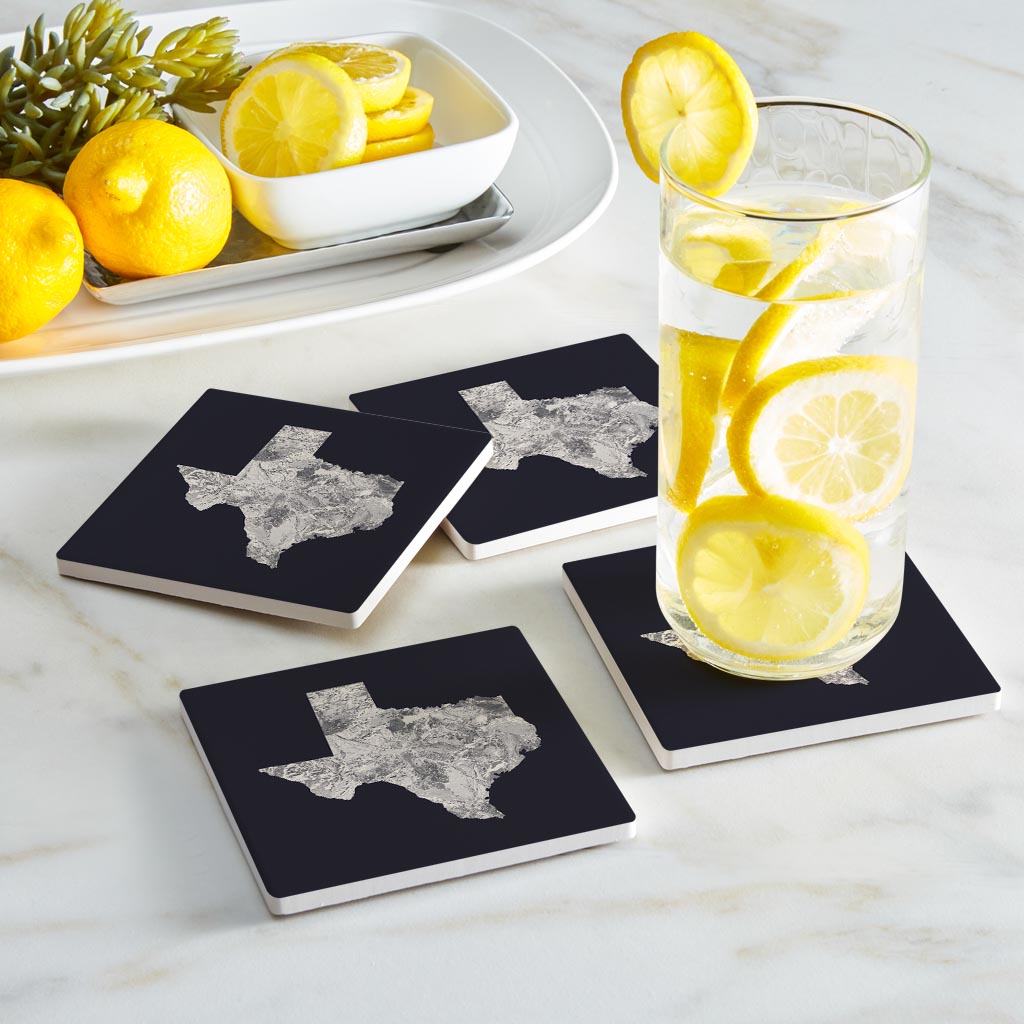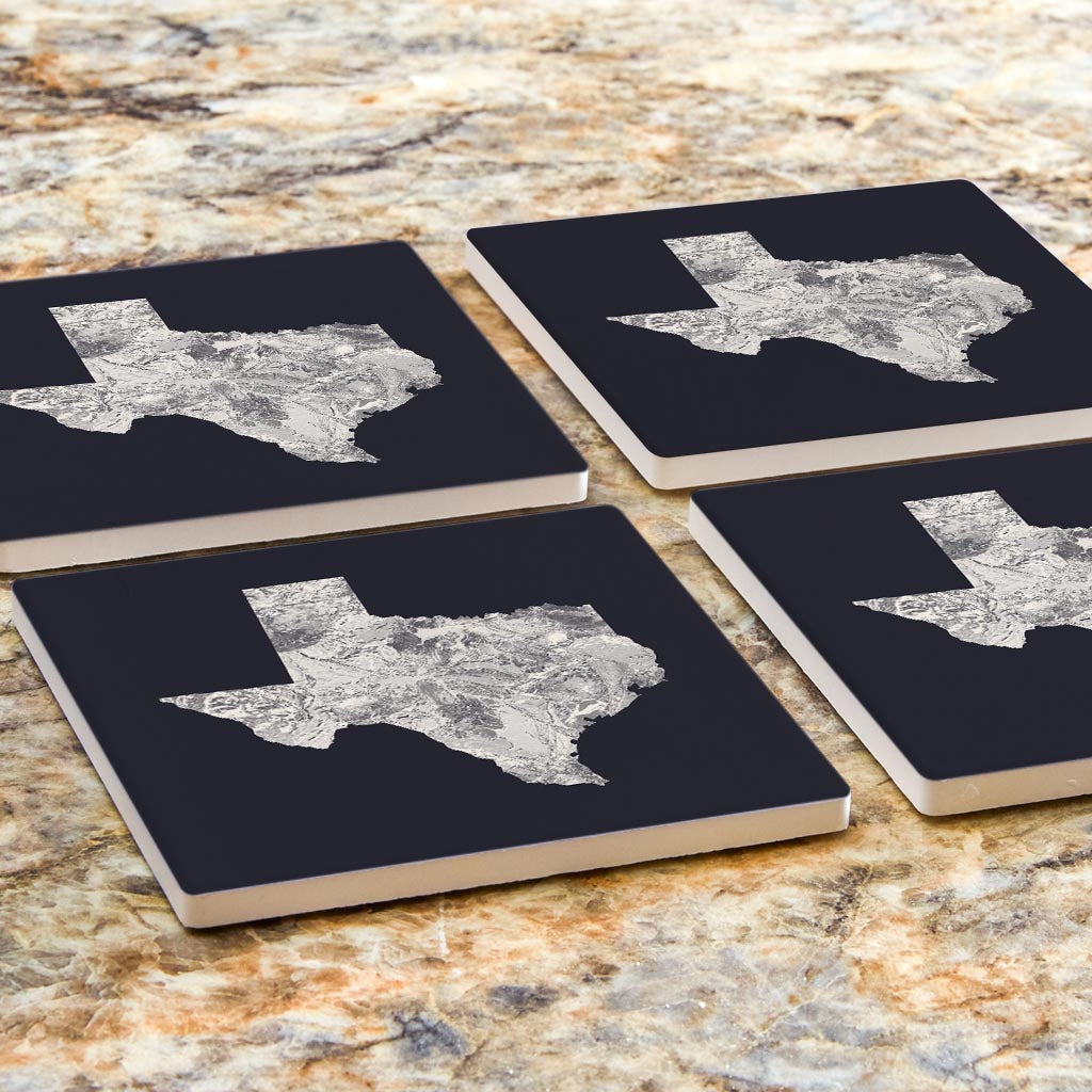 Modern Minimalist Texas Metal State Shape | Absorbent Coasters | Set of 4 | Min 2