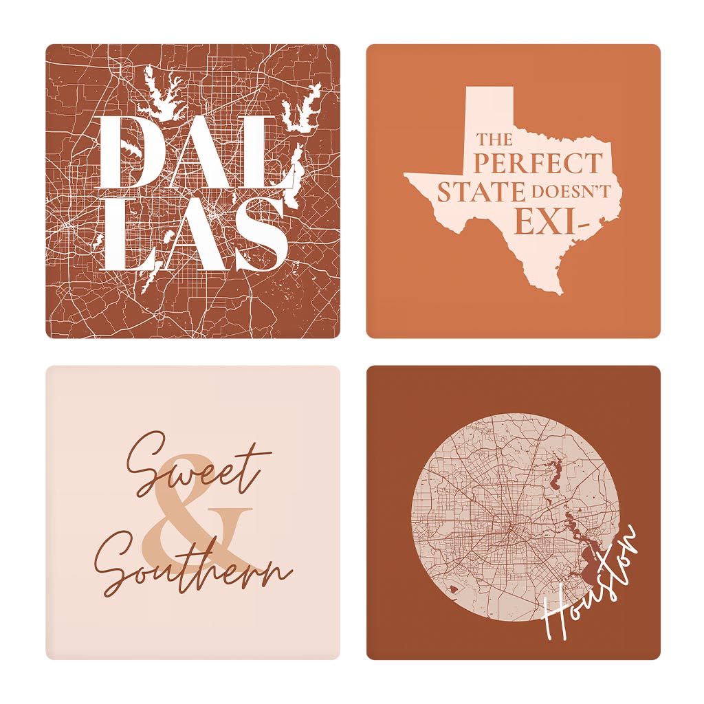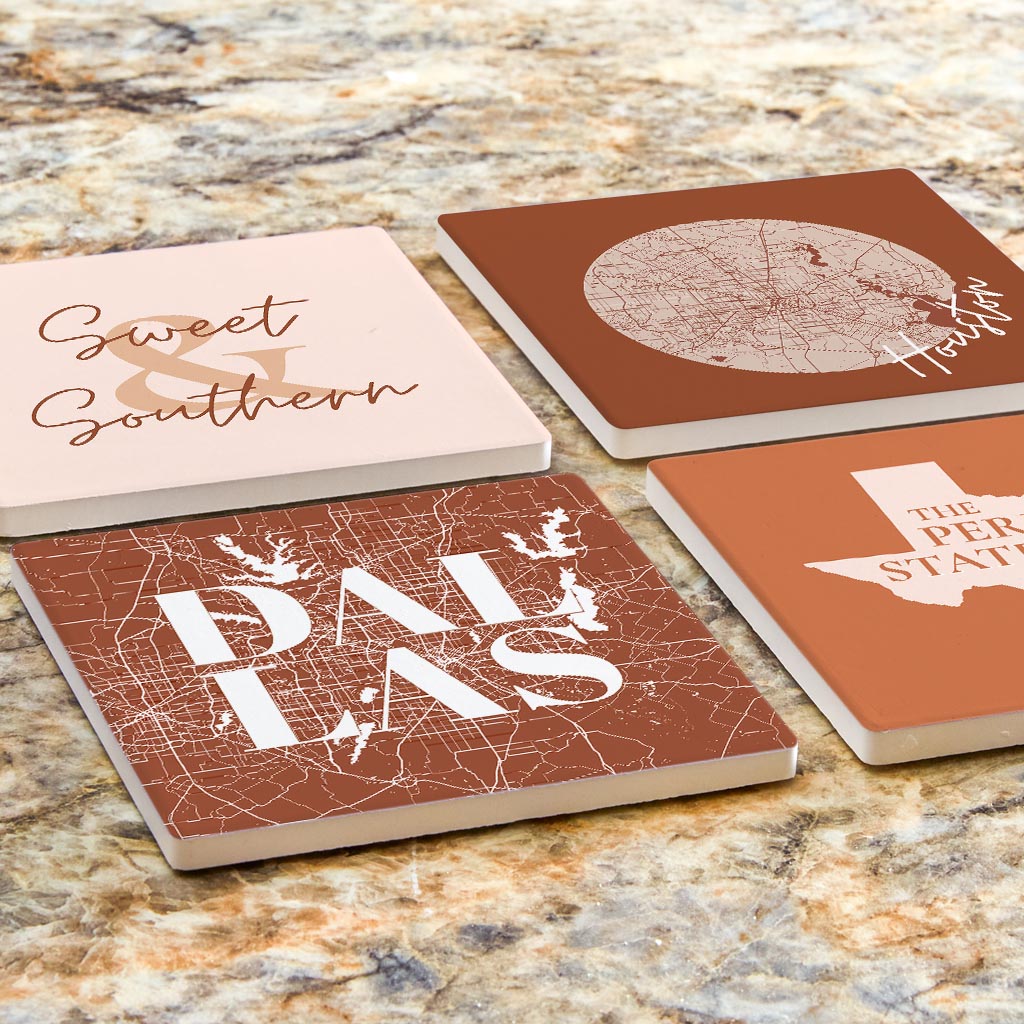 Modern Minimalist Texas Set | Absorbent Coasters | Set of 4 | Min 2