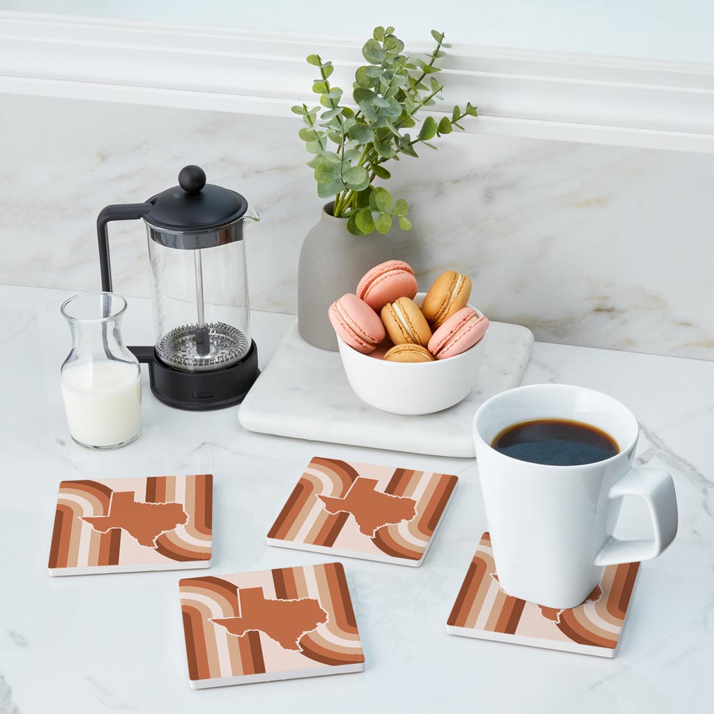 Modern Minimalist Texas State Shape Retro Lines | Absorbent Coasters | Set of 4 | Min 2
