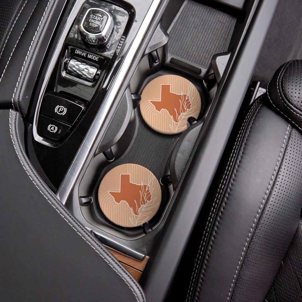 Modern Minimalist Texas State Shape With Leaf | Absorbent Car Coasters | Set of 2 | Min 4