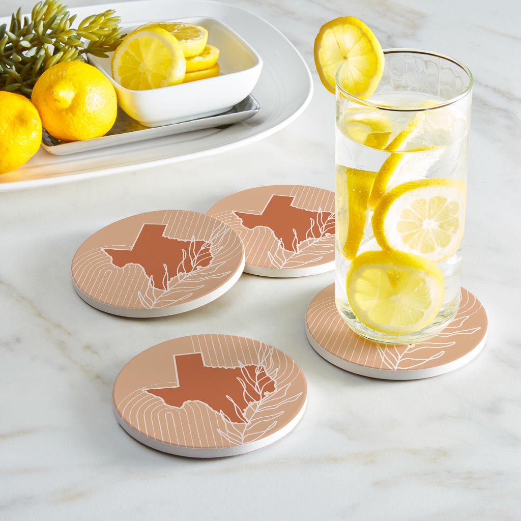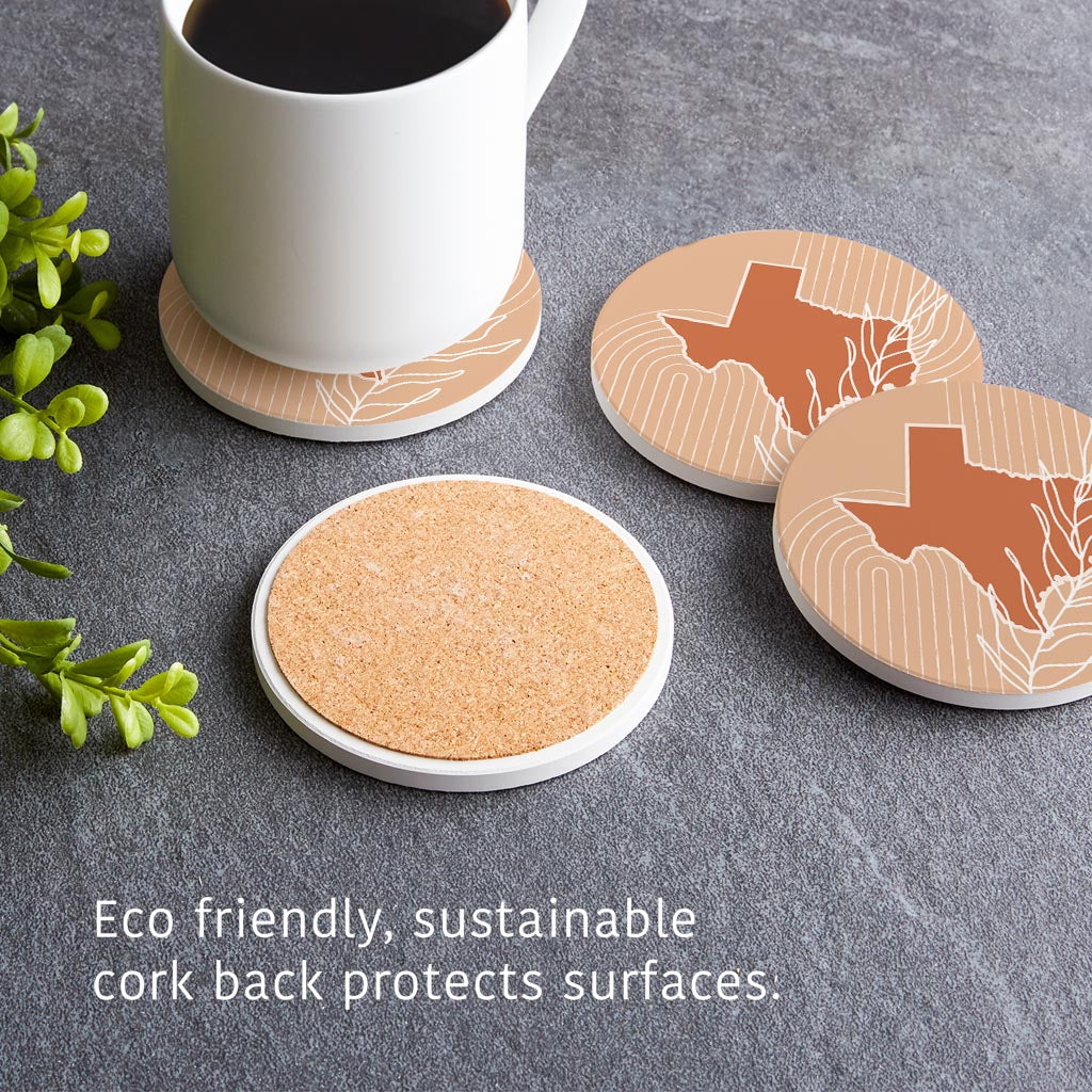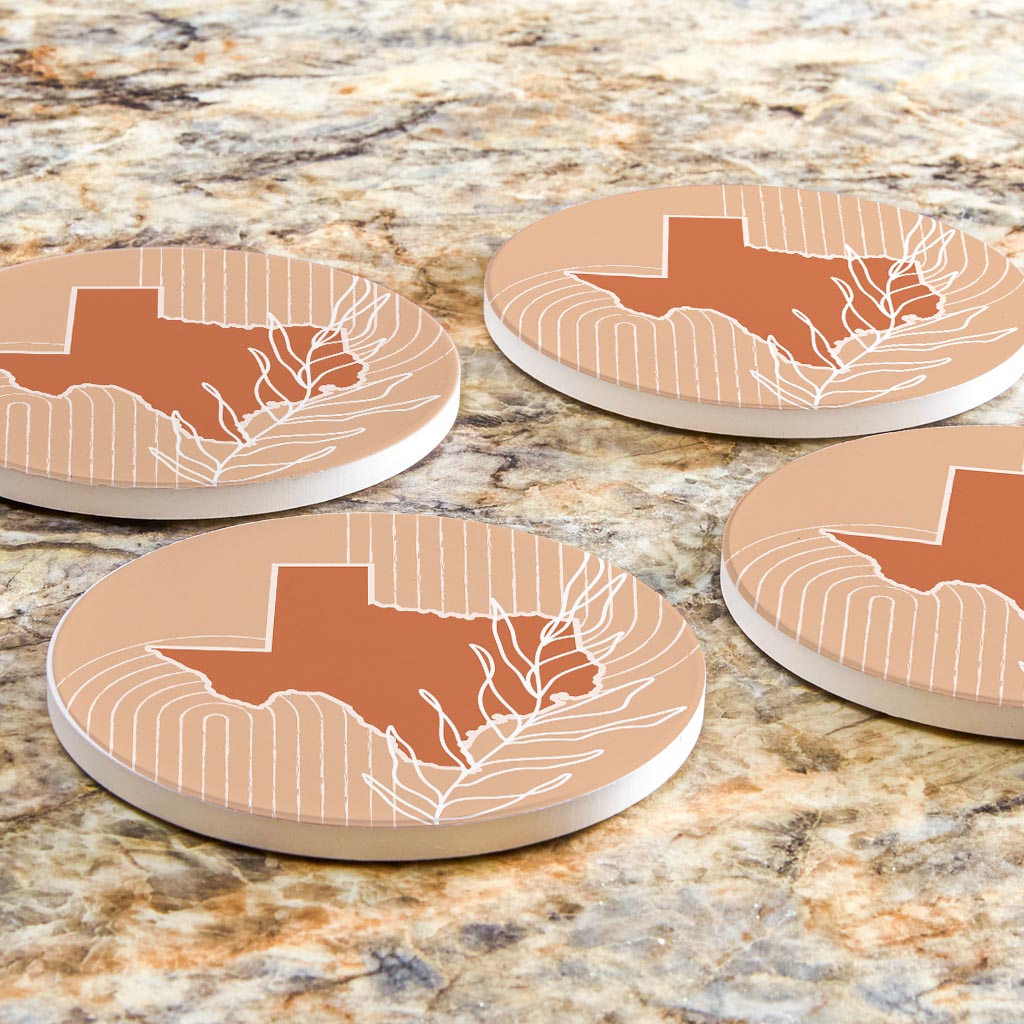 Modern Minimalist Texas State Shape With Leaf | Absorbent Coasters | Set of 4 | Min 2