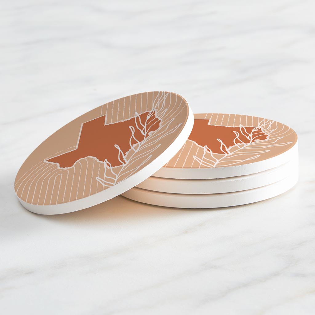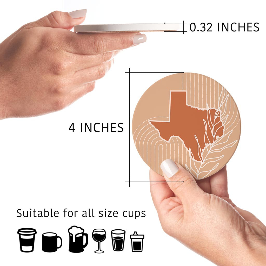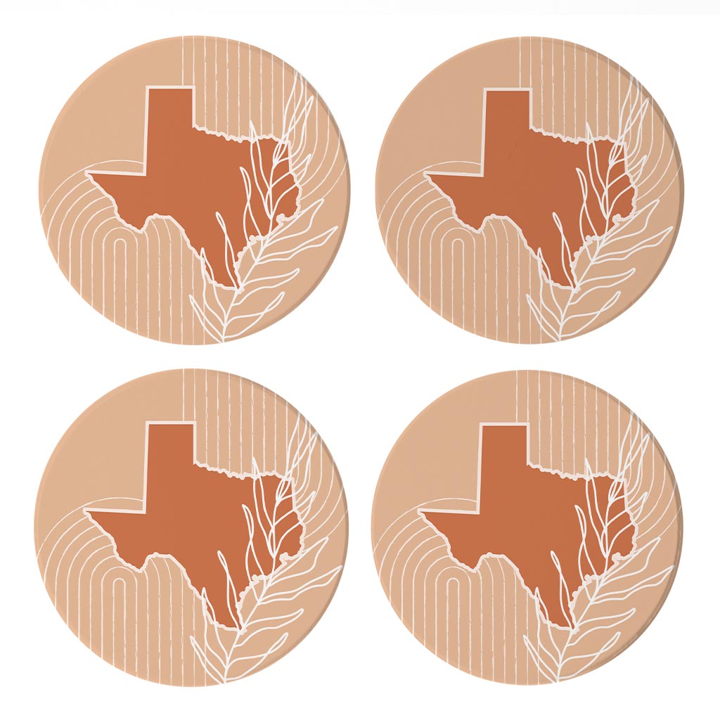 Modern Minimalist Texas State Shape With Leaf | Absorbent Coasters | Set of 4 | Min 2