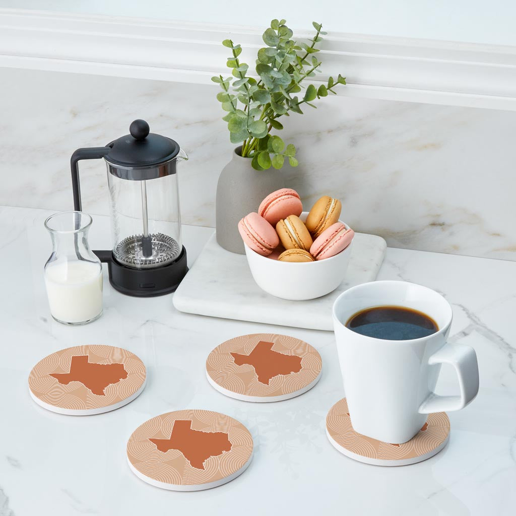 Modern Minimalist Texas State Shape With Pattern | Absorbent Coasters | Set of 4 | Min 2