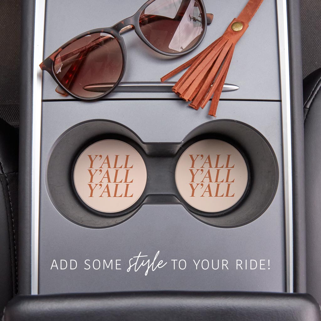 Modern Minimalist Texas Yall | Absorbent Car Coasters | Set of 2 | Min 4
