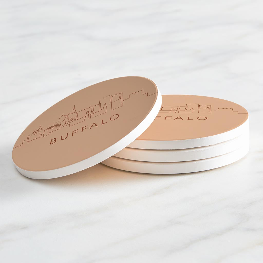 Modern Minimalistic New York Buffalo Skyline| Absorbent Coasters | Set of 4 | Min 2