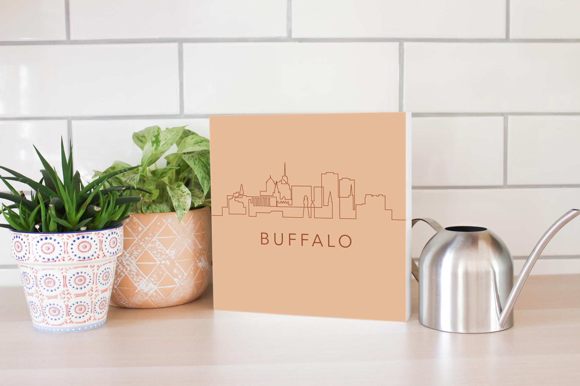 Modern Minimalistic New York Buffalo Skyline | Wood Block | Eaches | Min 2