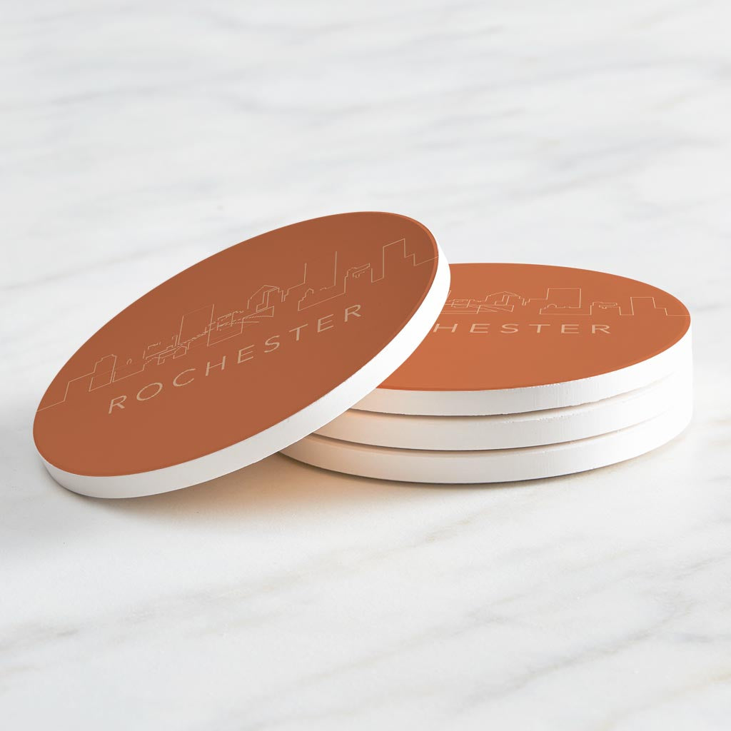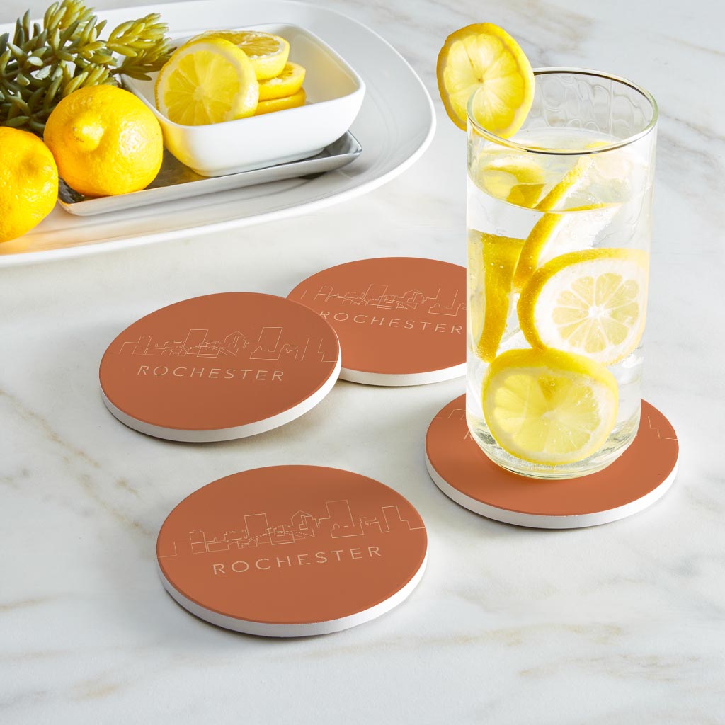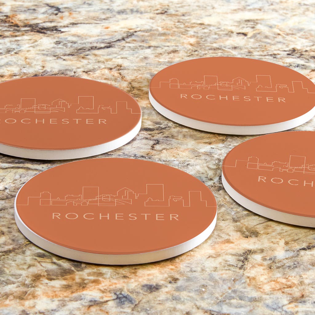 Modern Minimalistic New York Rochester Skyline | Absorbent Coasters | Set of 4 | Min 2