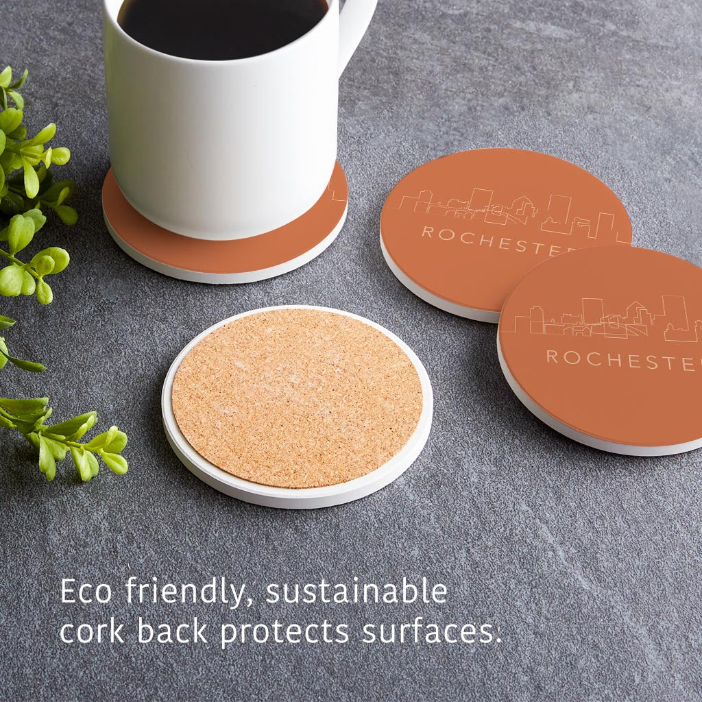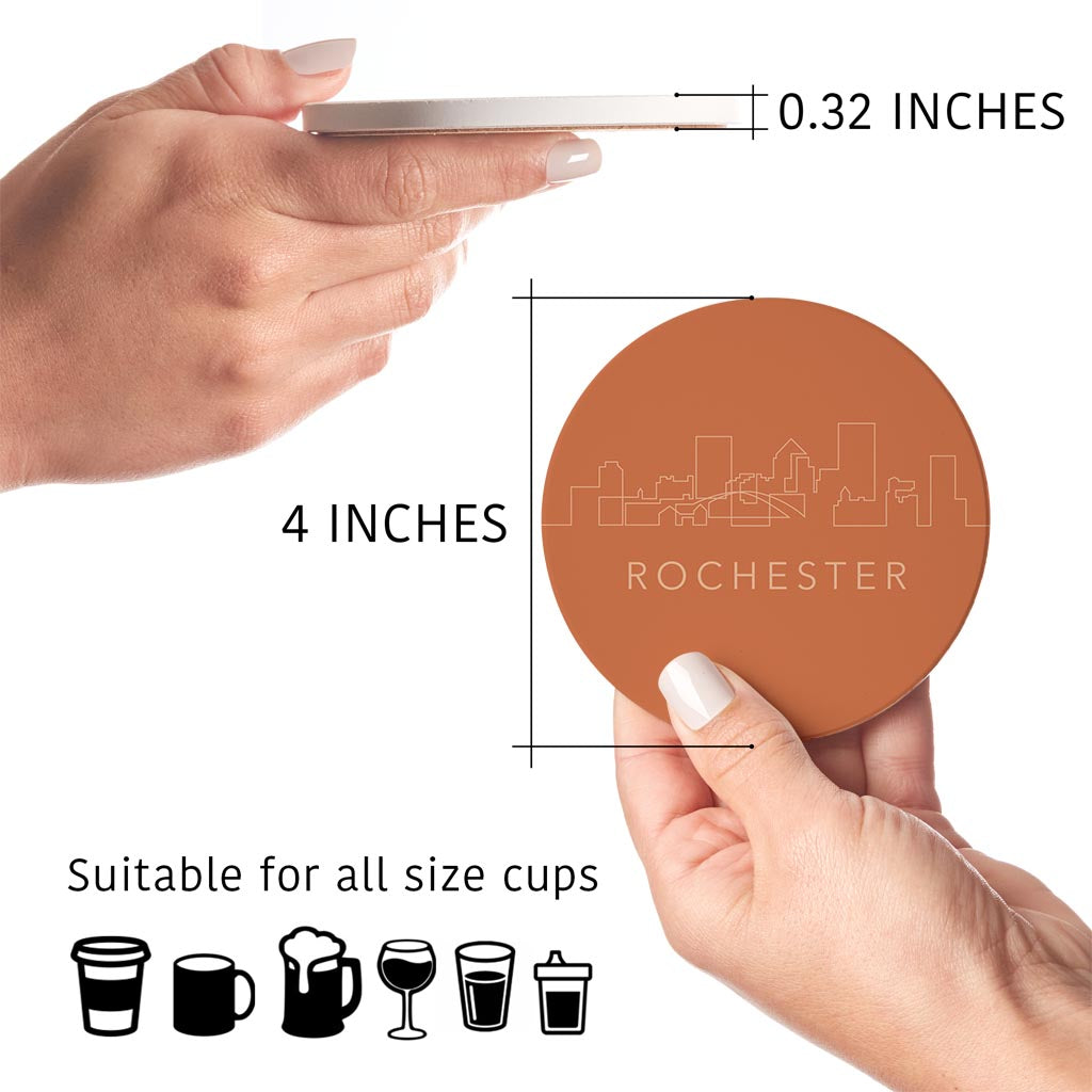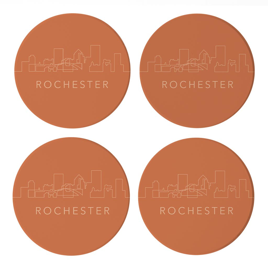 Modern Minimalistic New York Rochester Skyline | Absorbent Coasters | Set of 4 | Min 2