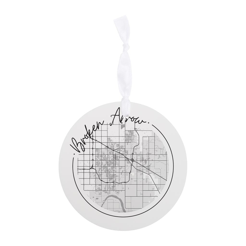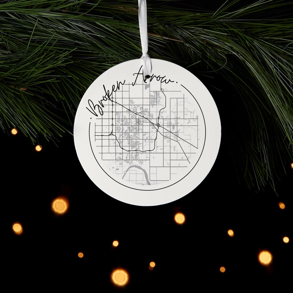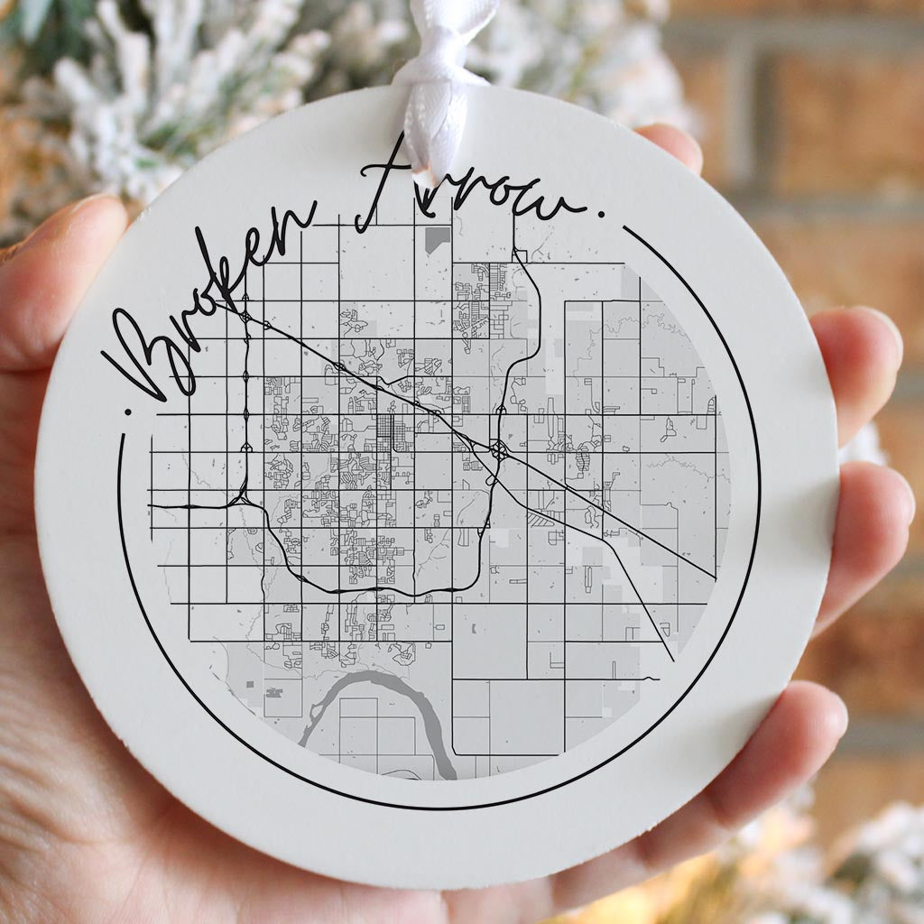Modern Oklahoma Broken Arrow Map | Wood Ornament | Eaches | Min 6
