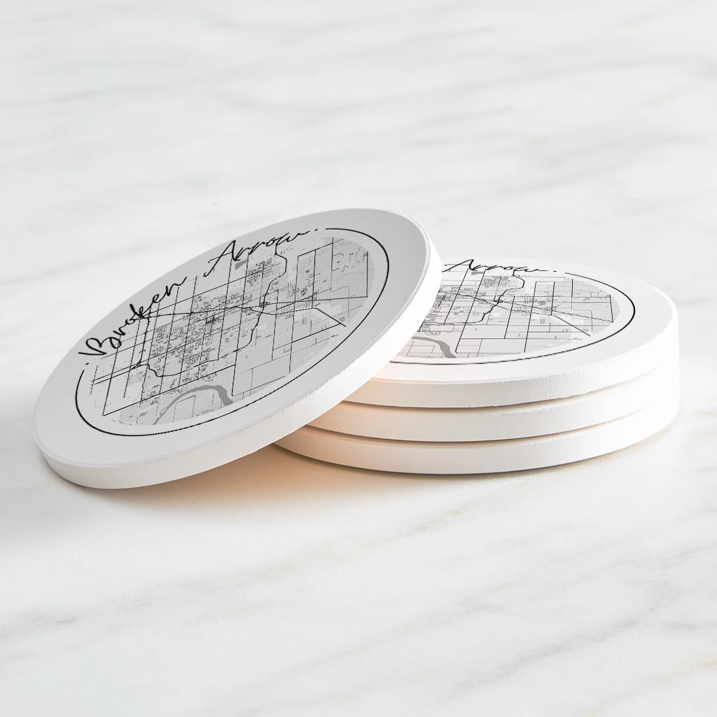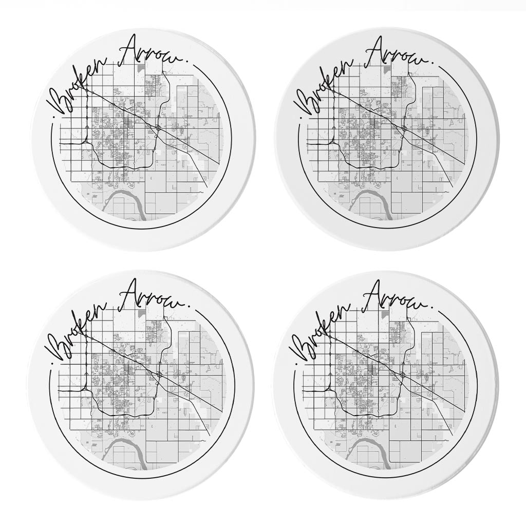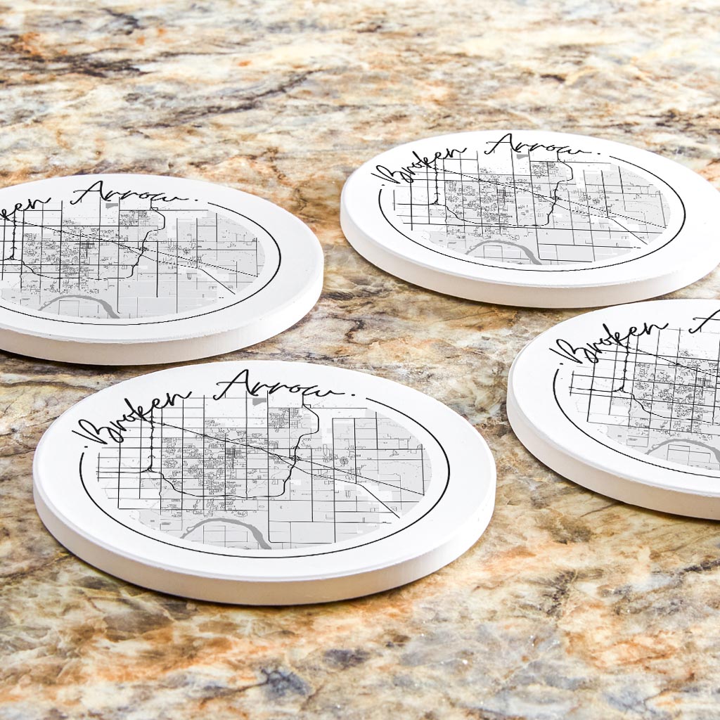 Modern Oklahoma Broken Arrow Map | Absorbent Coasters | Set of 4 | Min 2