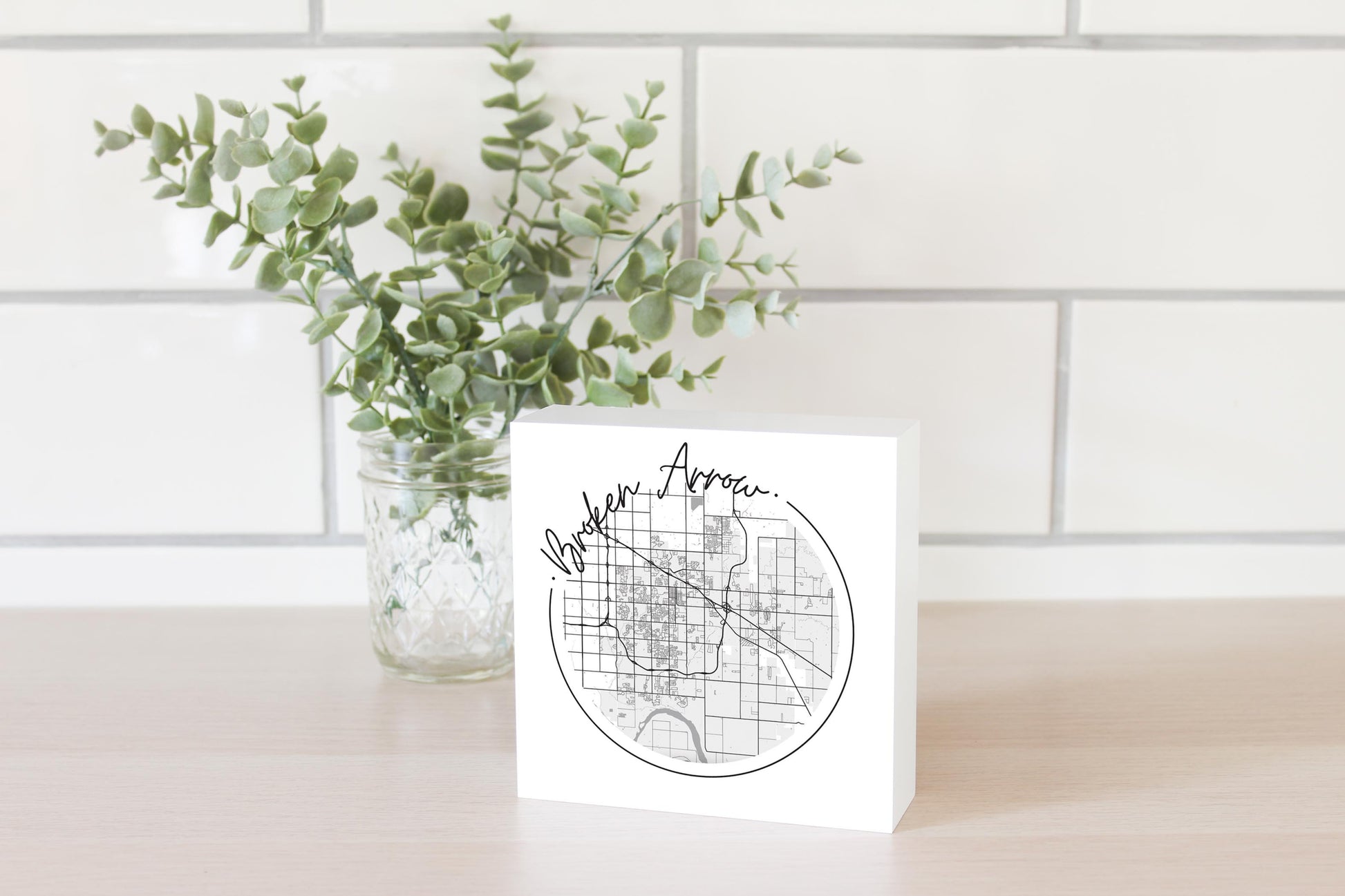 Modern Oklahoma Broken Arrow Map | Wood Block | Eaches | Min 4