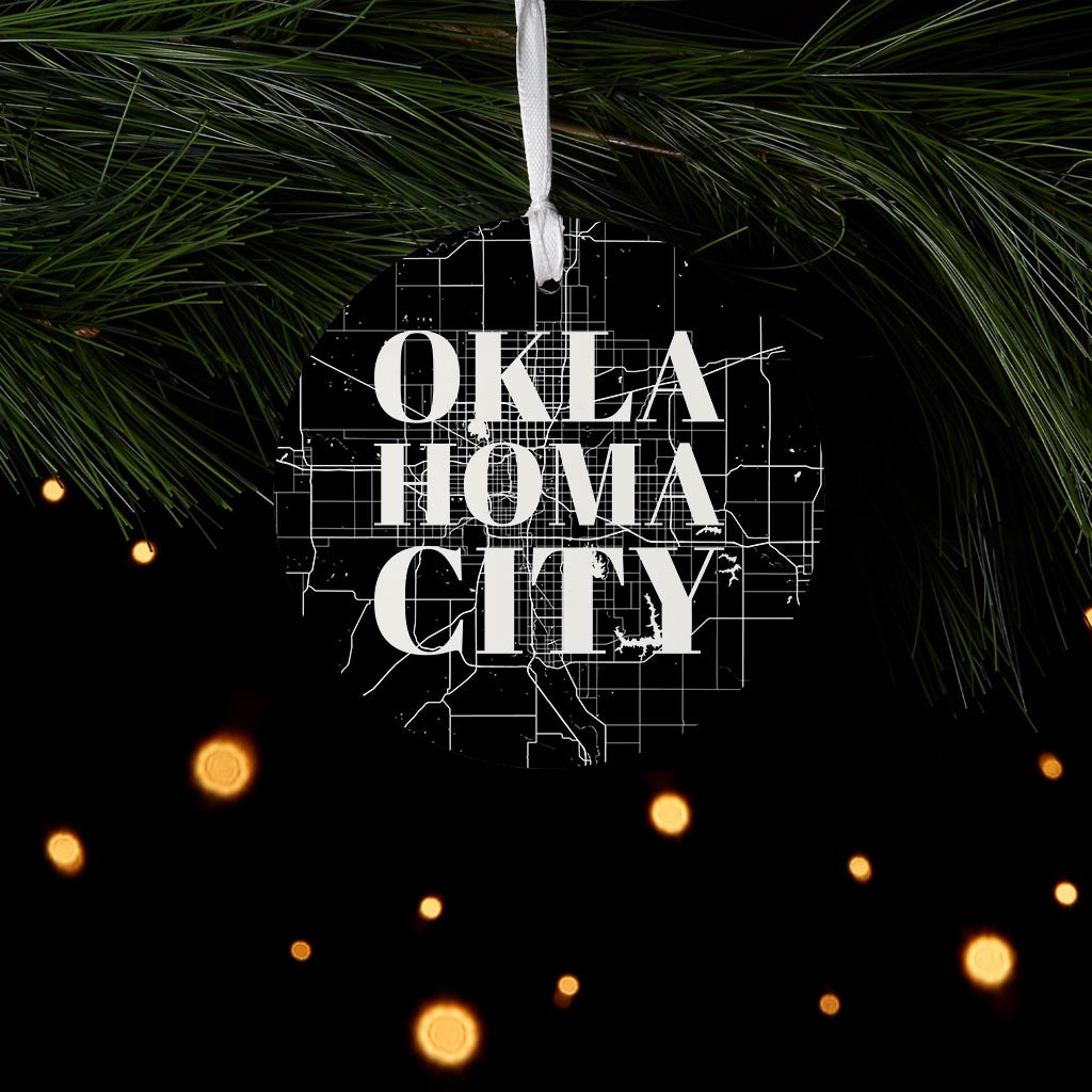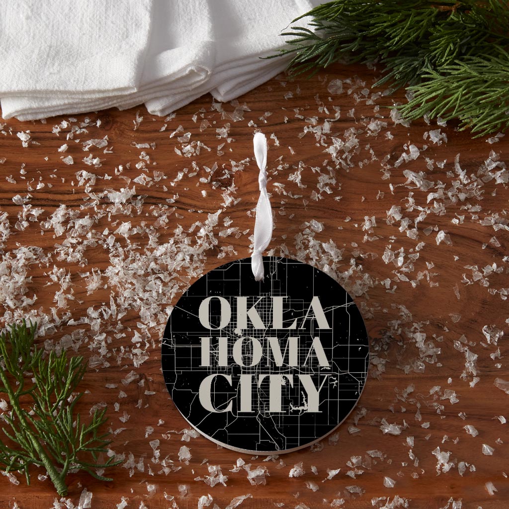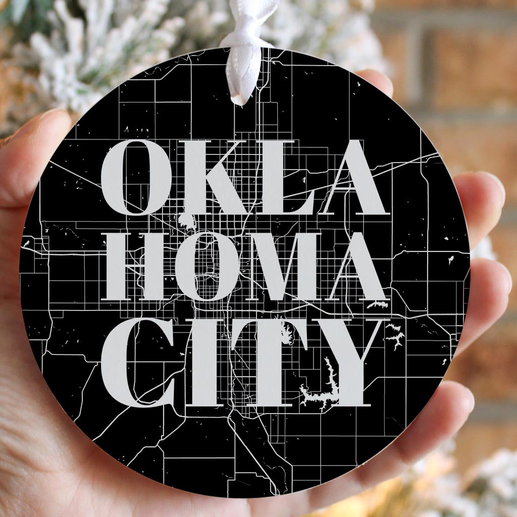 Modern Oklahoma City Map | Wood Ornament | Eaches | Min 6