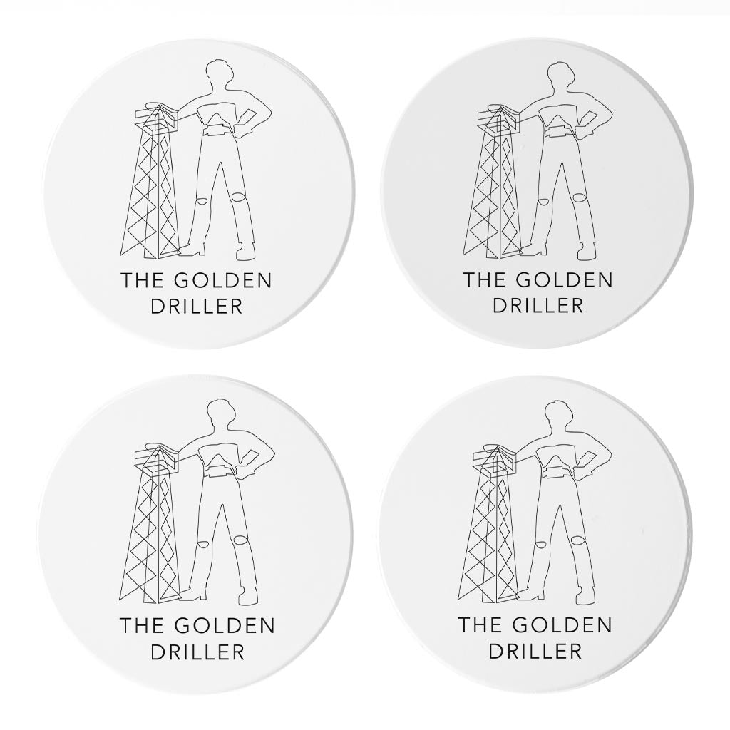 Modern Oklahoma Line Drawing The Golden Driller| Absorbent Coasters | Set of 4 | Min 2