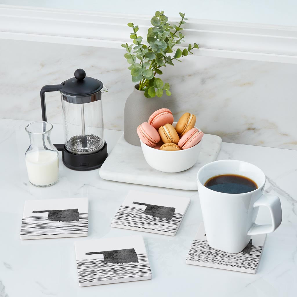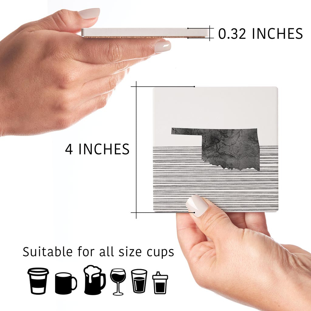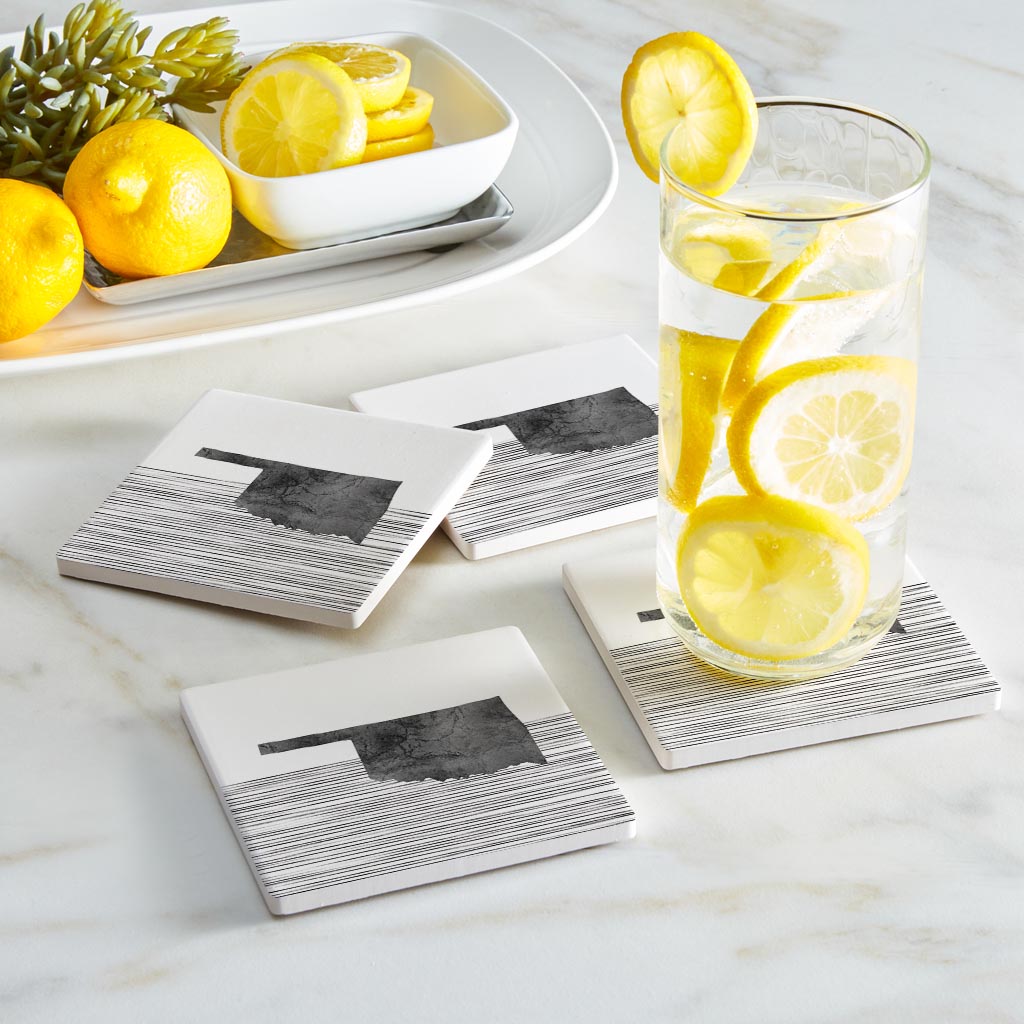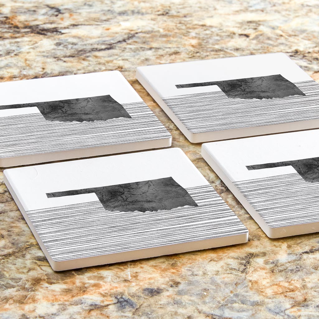 Modern Oklahoma State Shape With Straight Lines | Absorbent Coasters | Set of 4 | Min 2