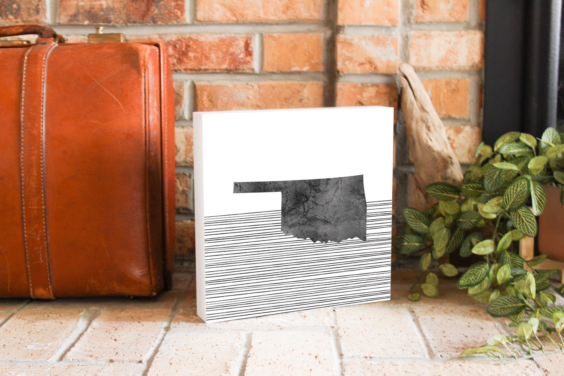 Modern Oklahoma State Shape With Straight Lines | Wood Block | Eaches | Min 2