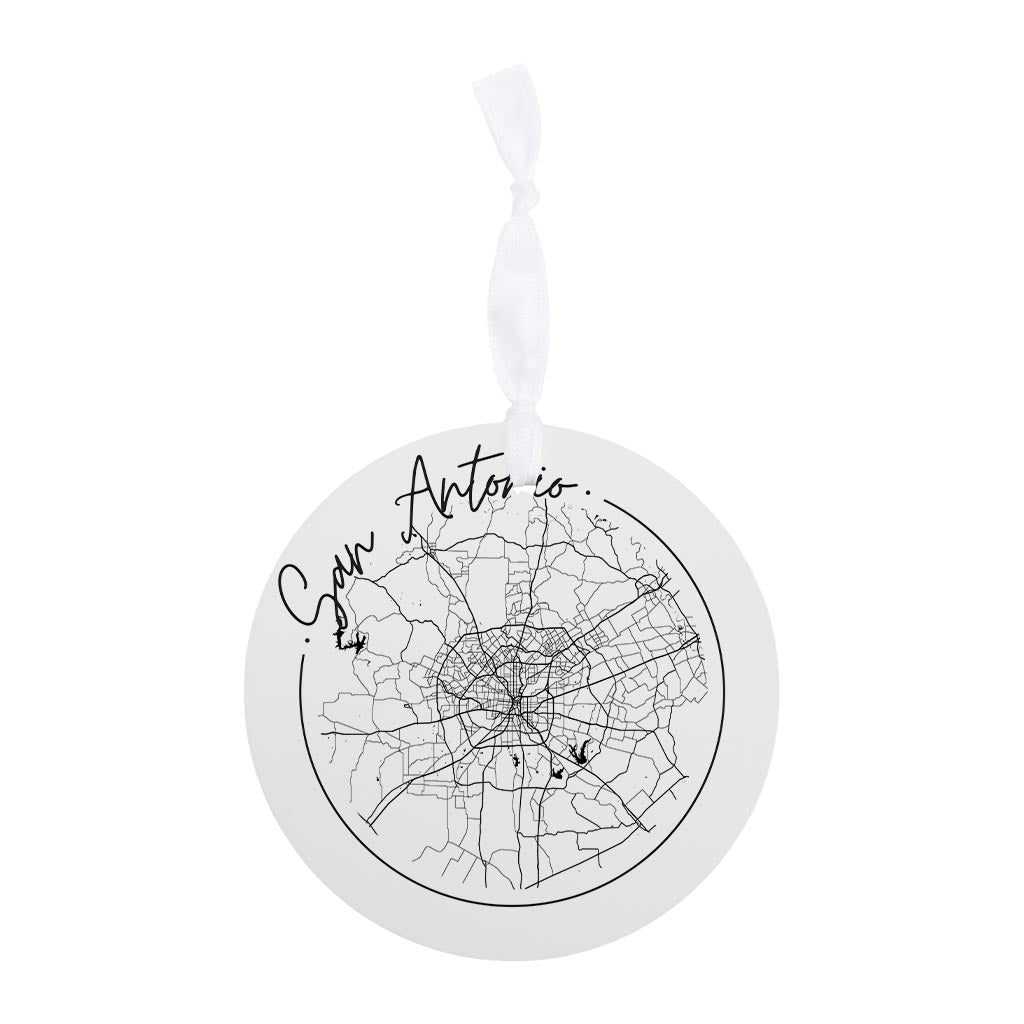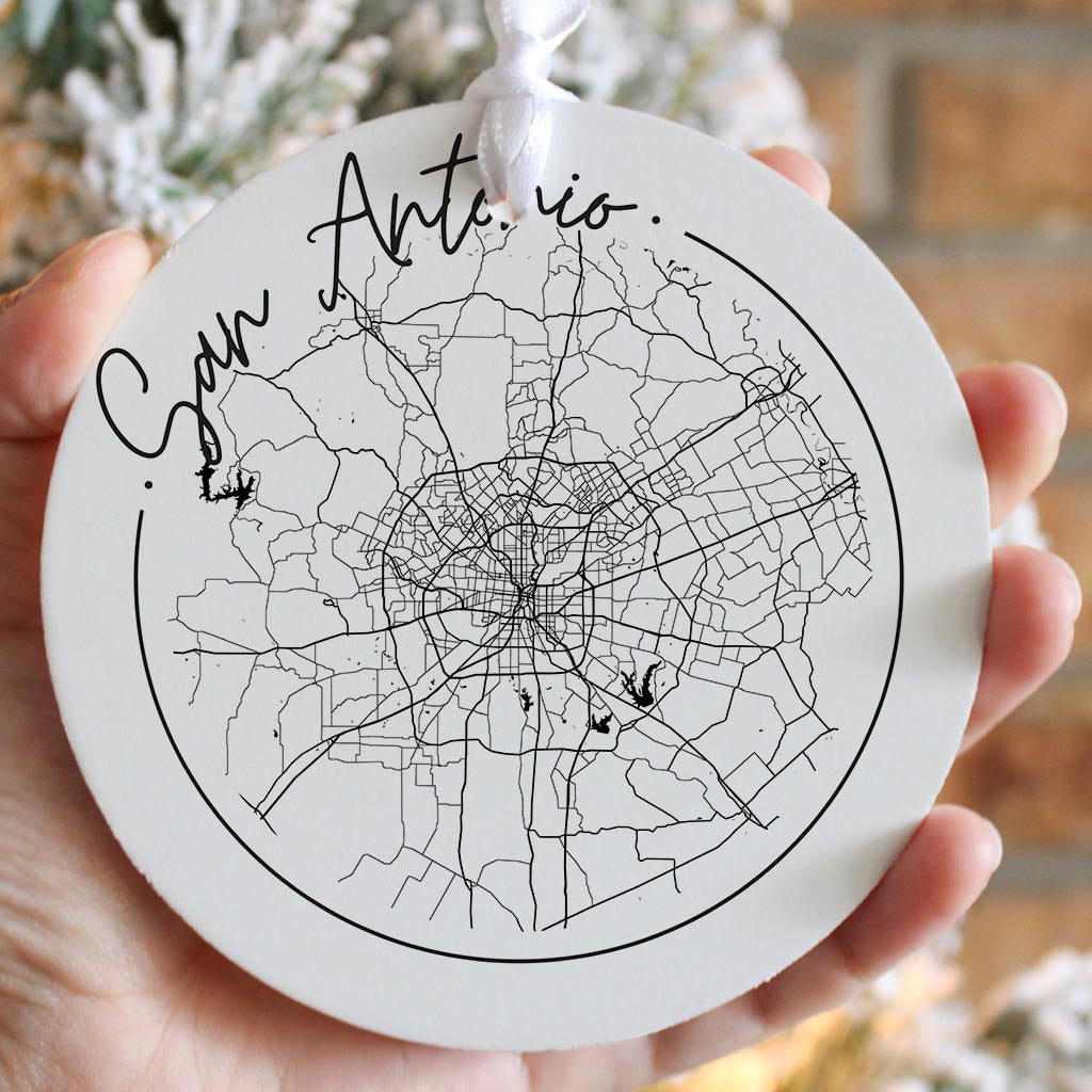 Modern San Antonio Round Map| Wood Ornament | Eaches | Min 6